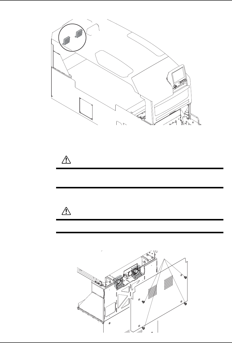 备注 )更换模组冷却风扇时,有必要拆除侧盖板。在模组后方有连接盖罩条的时候,因为会