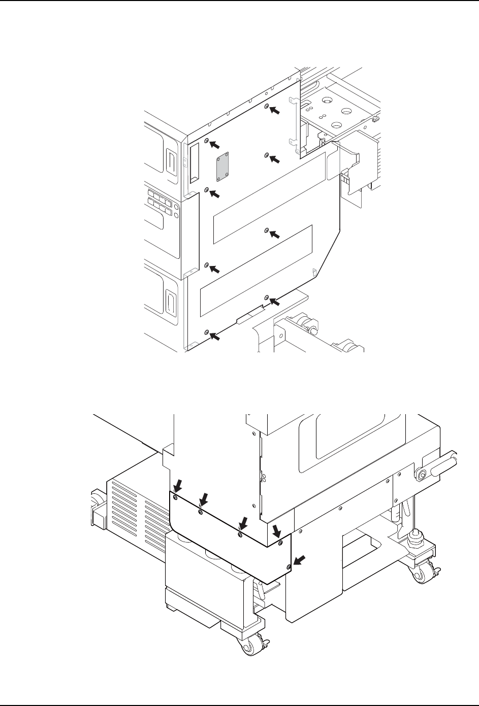 4. 请拆除位于料盘单元后面的侧盖板 ( 左侧 )的5根固定螺丝。