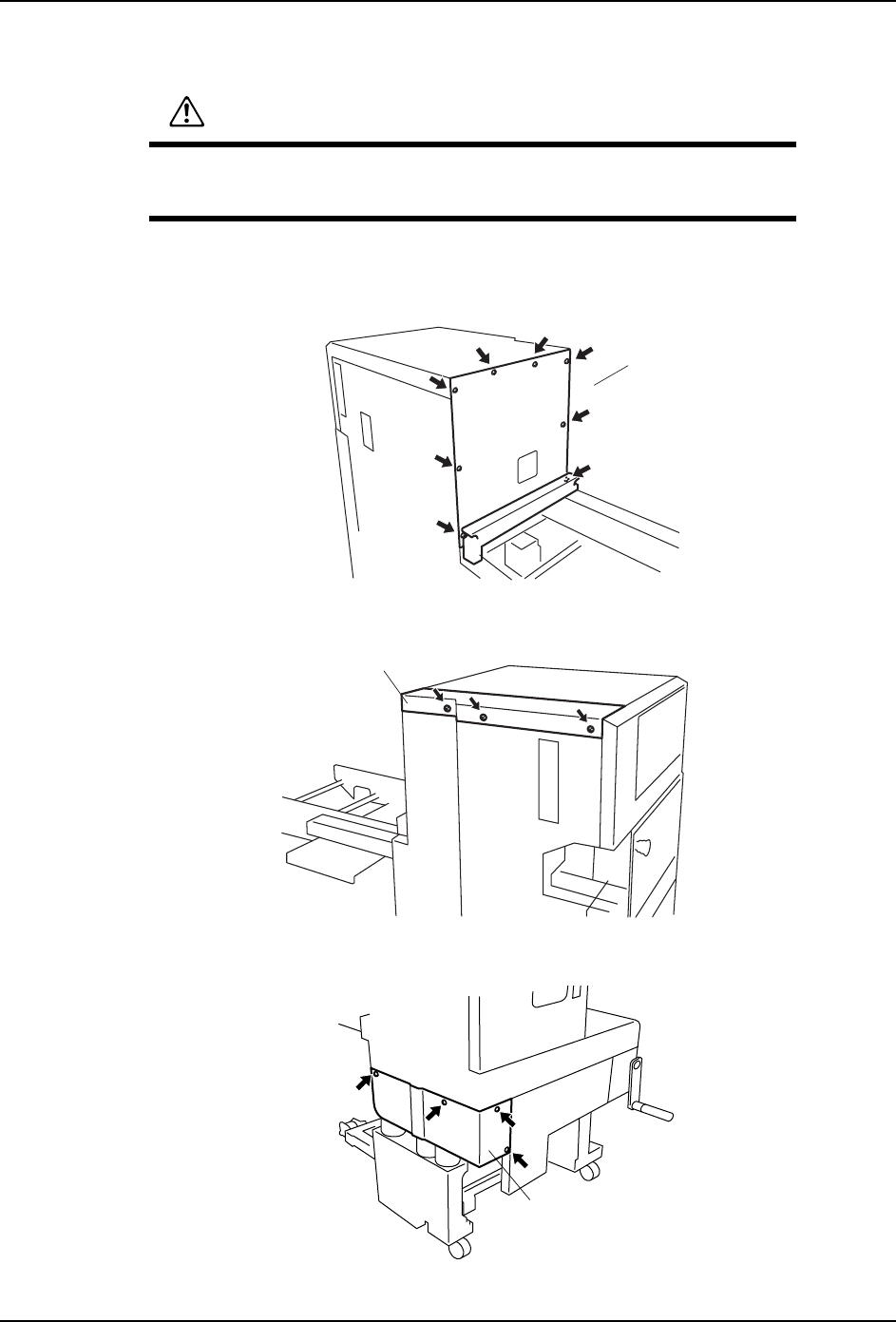 4. 请拆除单元后面的侧盖板 ( 左侧 ) 的固定螺丝 (4 个 )。
