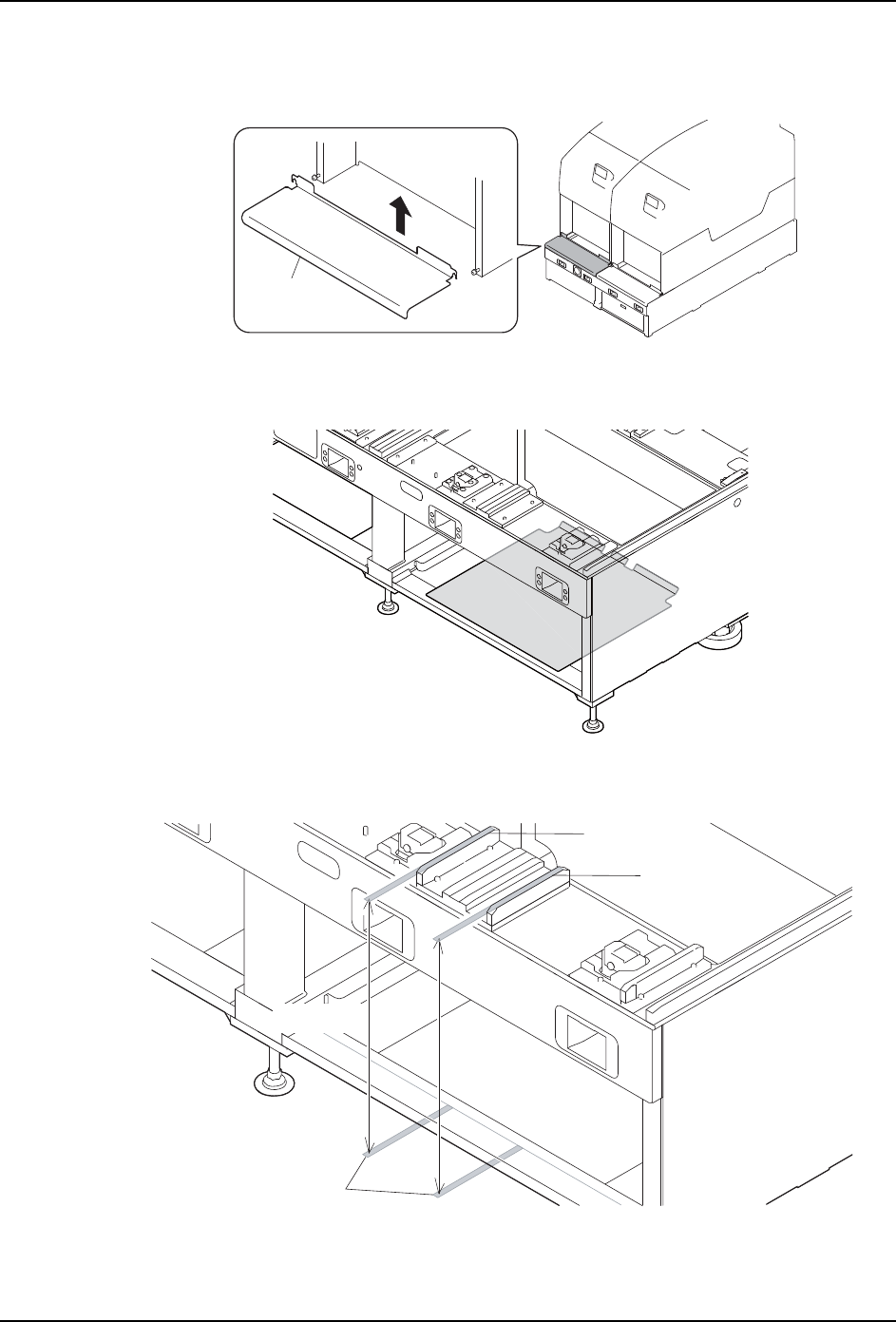 8. 对应各种功能时的准备操作 MEC-NXT3-004S0 528 NXT III 机械手册 8.1.3 不使用治具时的 PCU 导轨的安装 1. 请取下模组前盖板。 2. 请取下废料带箱。 3. 请取下废料带箱下的盖板。 4. 请使用刻度尺等,测量从基座上的轨道表 面到基座底部的距离。请从左右 2 个各自有的 轨道测量距离。 公差值在 36 4mm 以上 3 66mm 以下。 Ⲫᵓ NXTOPE219S 01MEC-1575 ⌟ᅮ䎱…