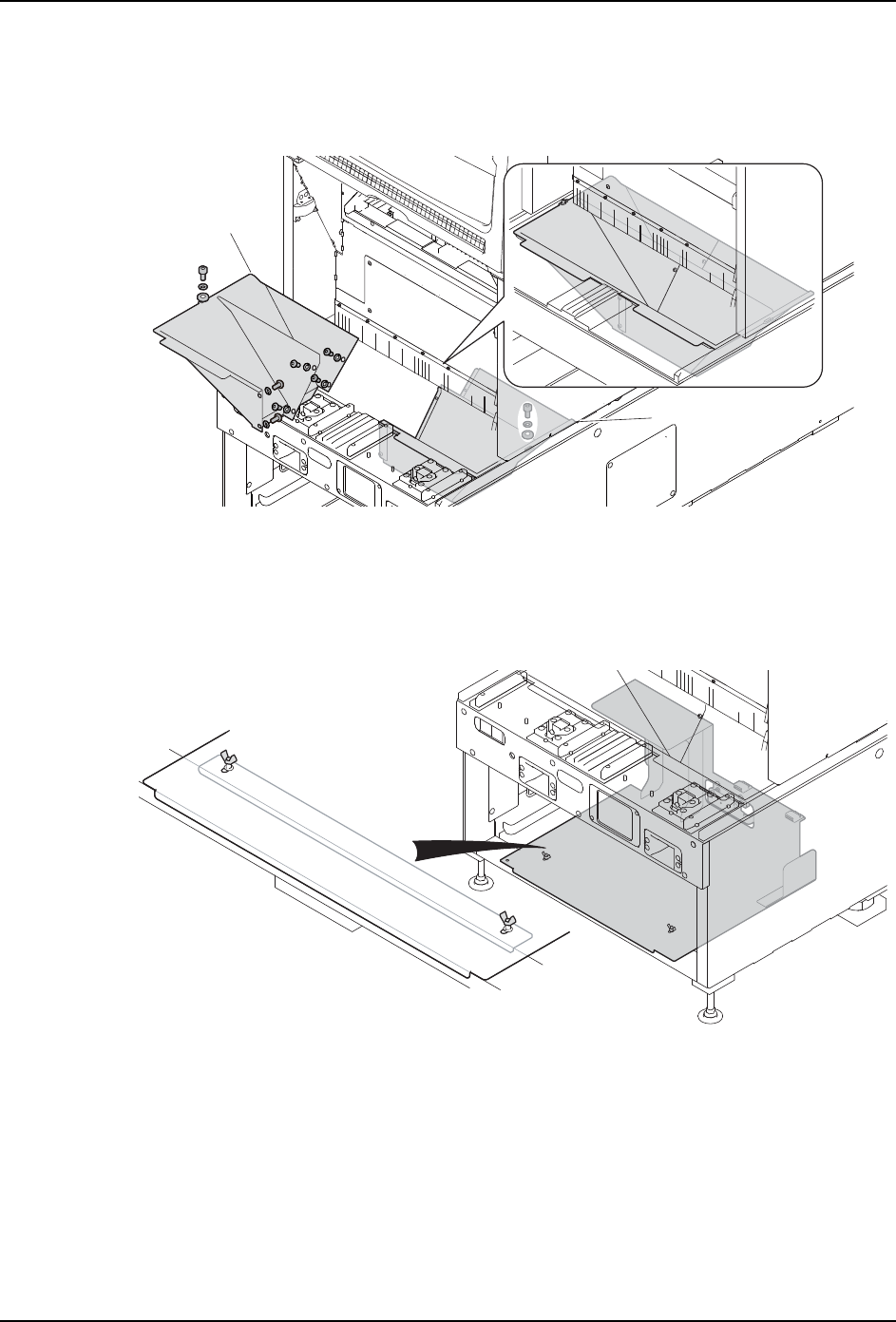 e. 请将元件排出箱的台座安装在盖板的上部,设置元件排出箱。