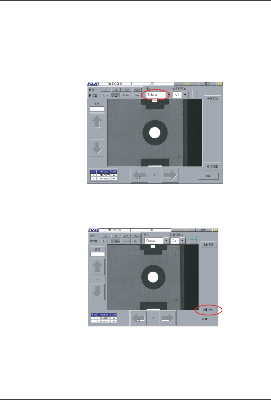 备注 )[ 相机设定 ] 按键只有在相机选择为 "Fiducial" 的时候有效。