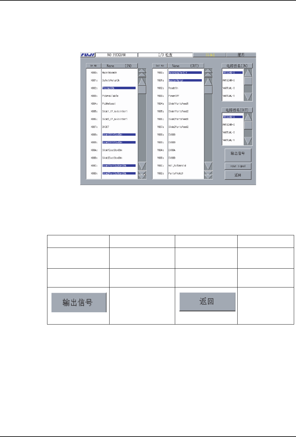 要使输出信号 ON 时,选择一览表的 [Out No] 项目上显示的端口号码,按下 [ 输出信号 ON]