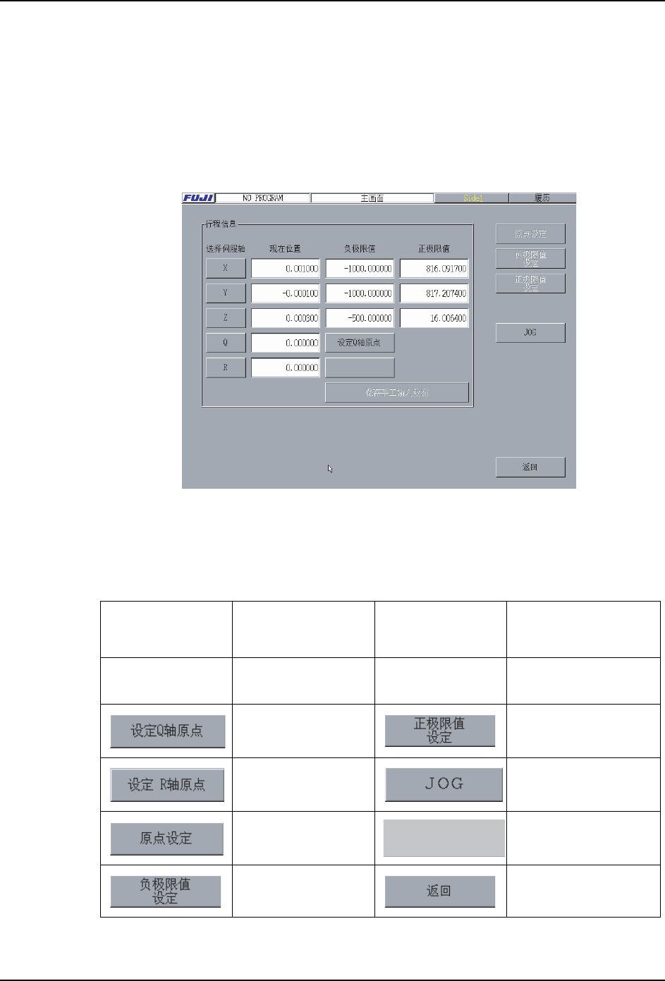 3. 指令功能说明 SYS-XPF-4.1S 106 XPF 系统手册 3.4.10 [ 维修保养 ] - [ 伺服初期调整 ] 功能说明 进行伺服轴行程的初期调整。 解说 这个指令进行行程的初期调整 。这个指令是如 果在更换了伺服电动机时设定原点位置的时 候使用。通常的操作,请不要执 行这个指令。详细请询问本公司销 售人员。 表示步骤 从 [主画面]顺序选择 [ 维修保养 ]、[ 行程初期调整 ]。 画面说明 08SYS-0213S …