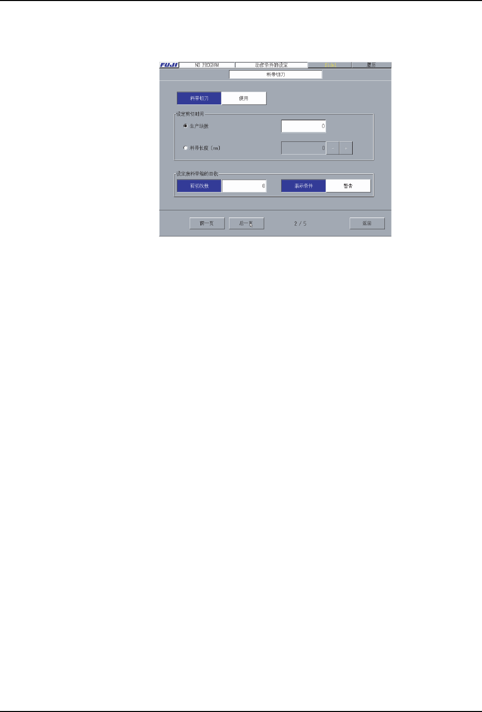 把 [ 废料带切刀 ] 的设定为 「不使用」的话,这个画面的项目不能设定。或者,不能从