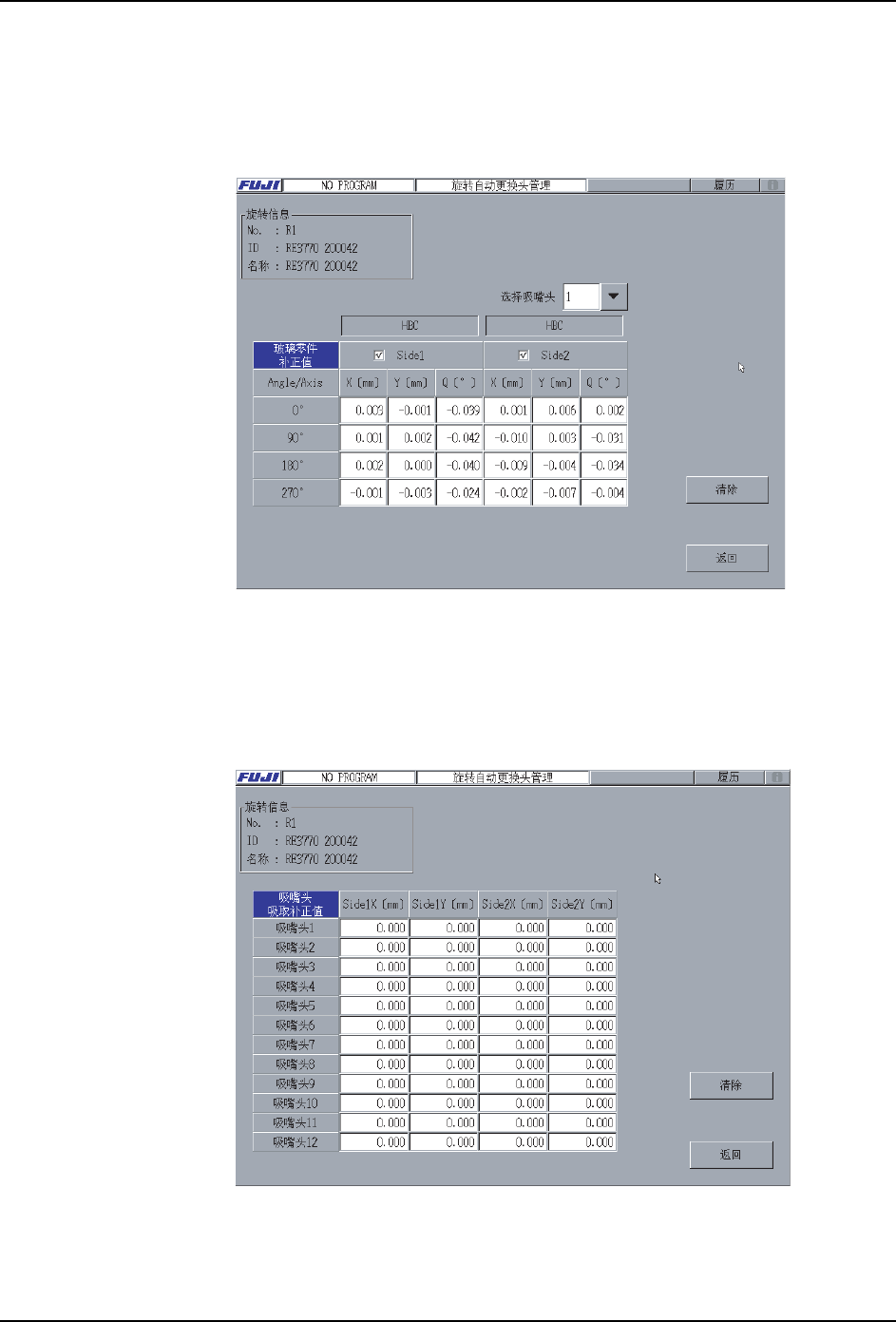 选择 「数据」项的 「吸嘴头吸取补正值」按键,显示出如下画面。
