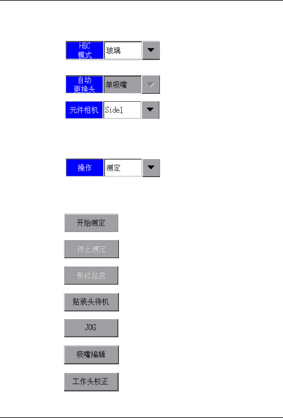 1. 选择模式。如果测定玻璃元件贴装补正值时,在 「HBC 模式」中选择 " 玻璃 "。