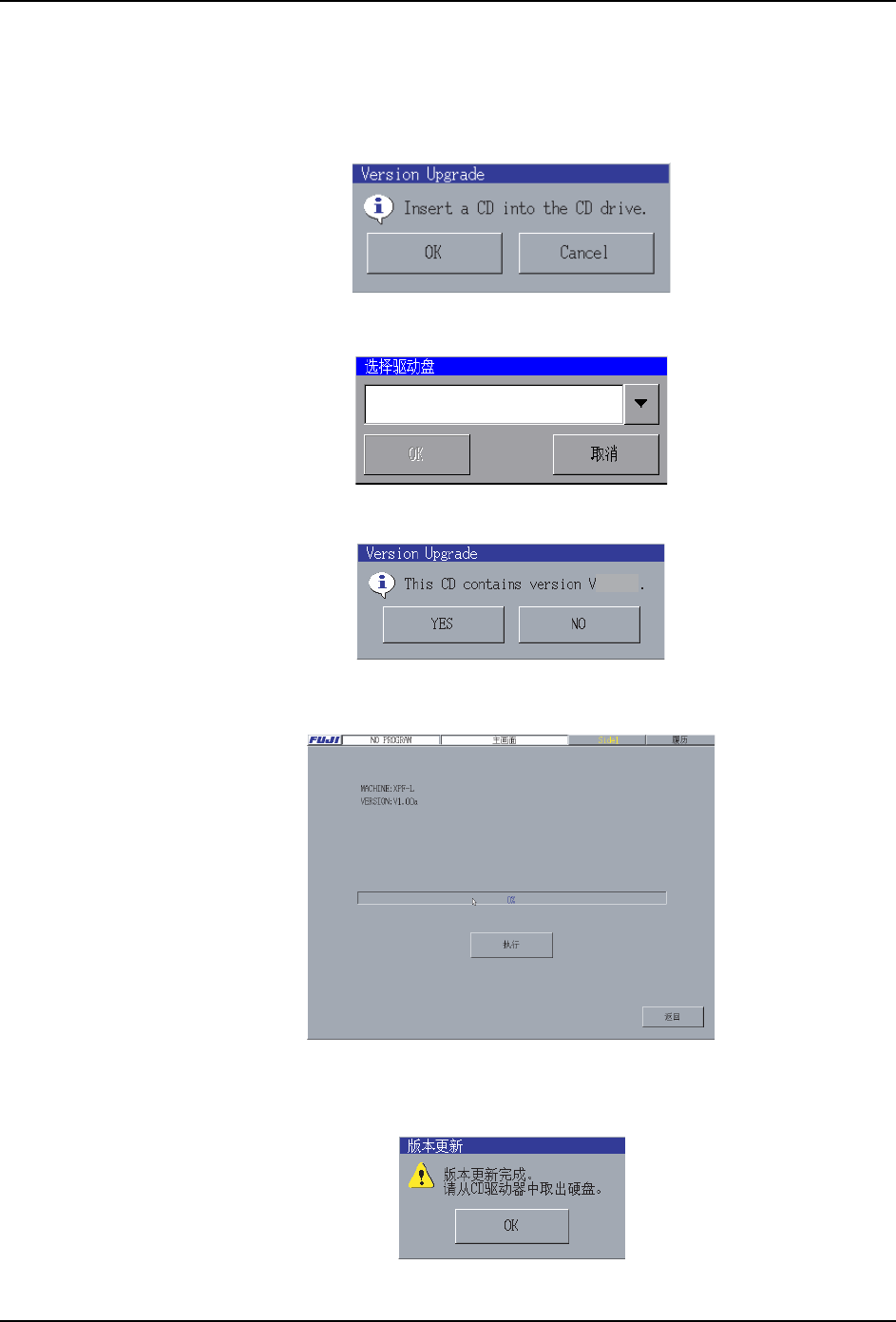 1. 插入 CD 到 CD 驱动器,选择 [ 机器版本升级 ] 按键。