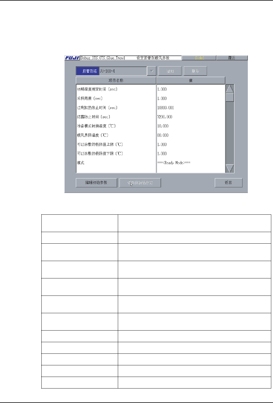 ( 从主画面选择 [ 设定 / 管理 ]-[ 设定胶着剂暖风参数 ] 也能显示出同样的画面。)