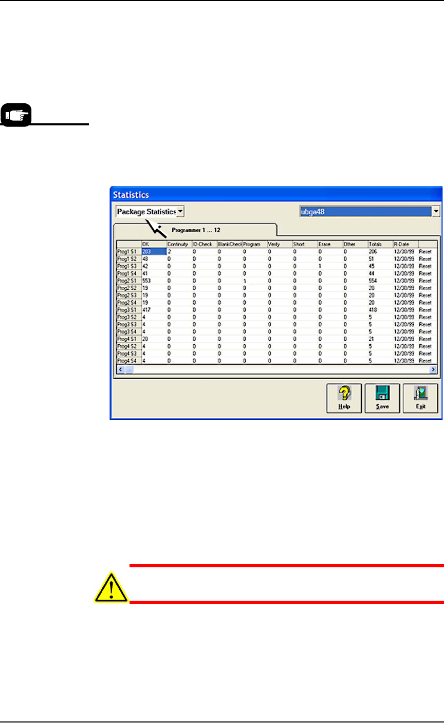 Figure 3-8: Resetting Package statistics. Open the Statistics window