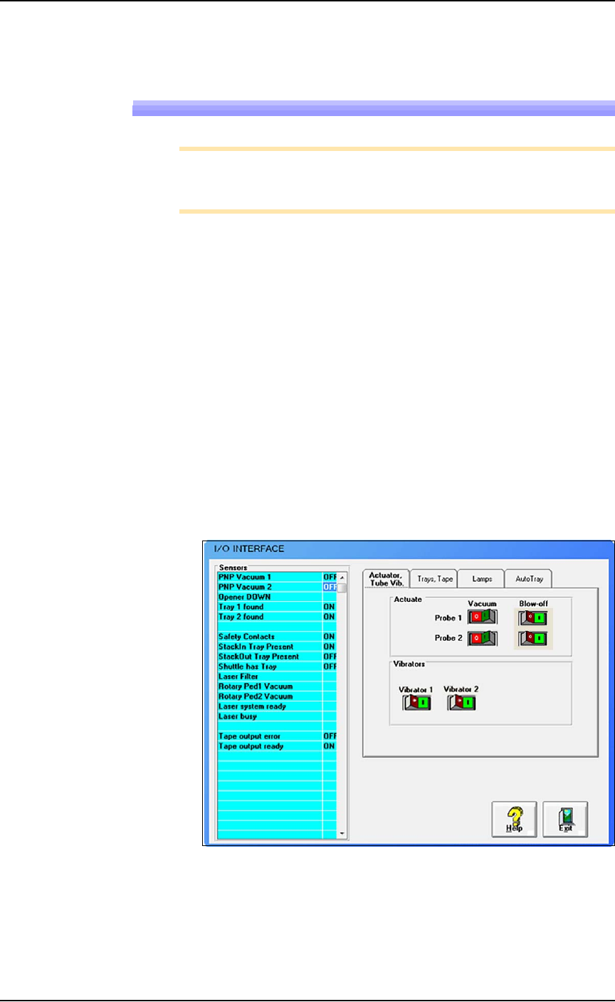 Figure 4-5: Vacuum and Blow-off on the I/O Interface window.