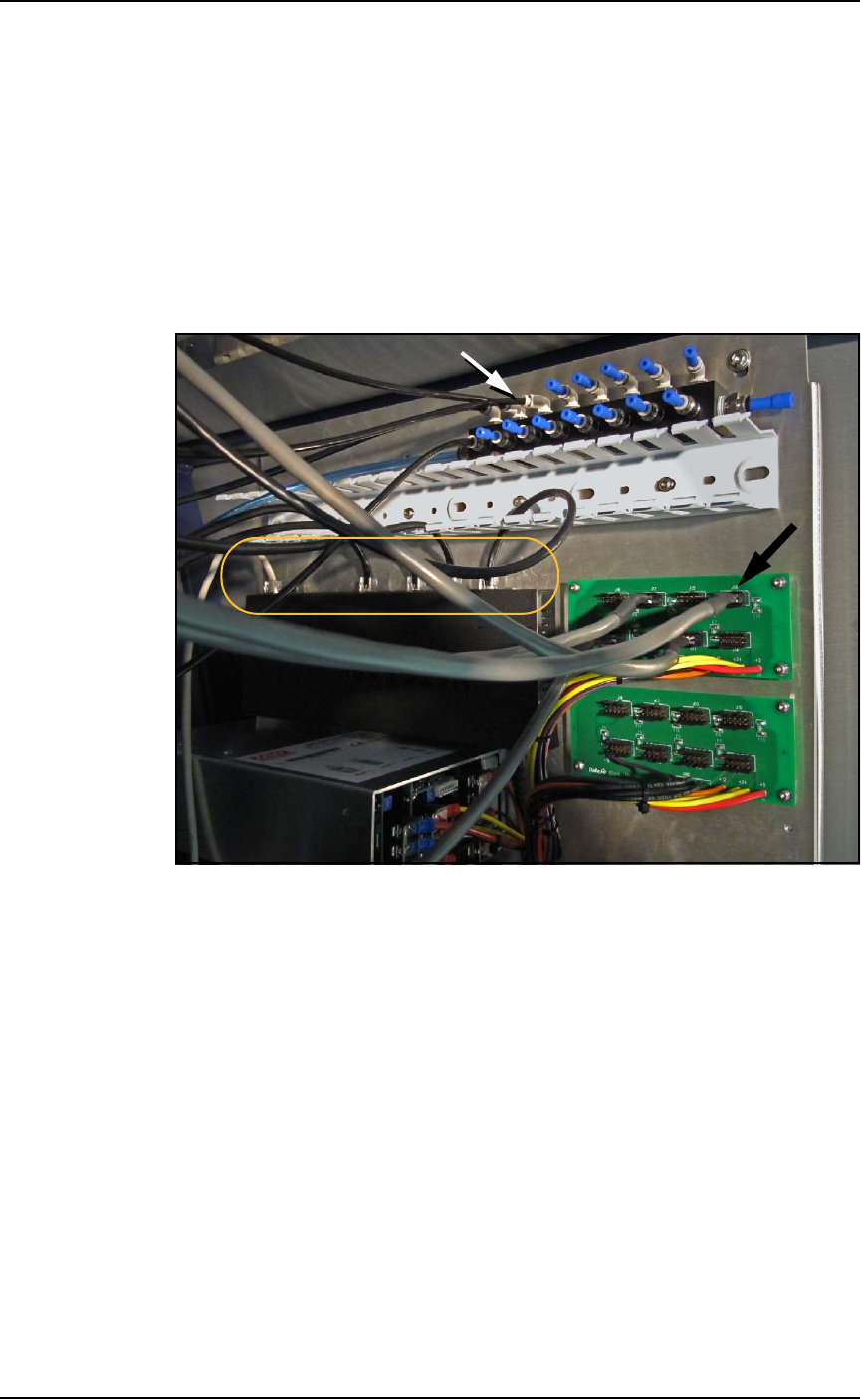 access door. Power cables (black arrow), Pneumatic tubing (white