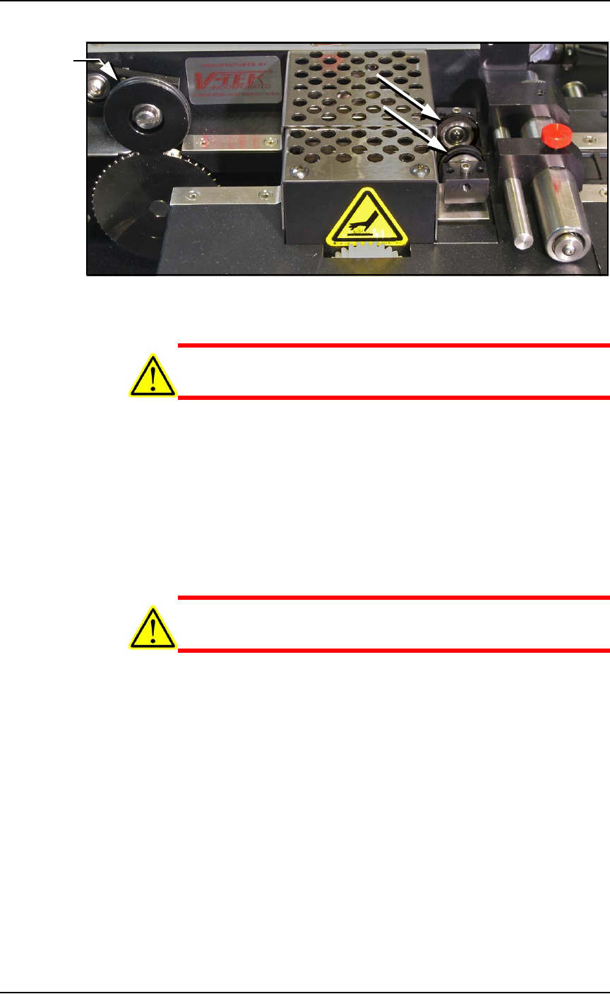 Figure 4-31: On the Tape Out Module, the PSA Seal Rollers (arrows)
