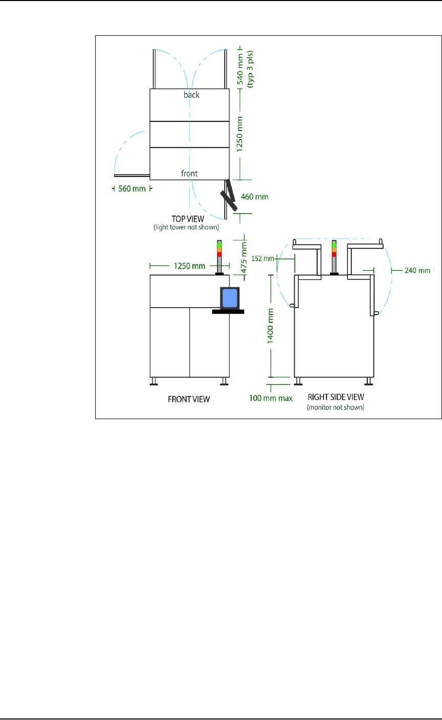 ■ Room Considerations ◘ Access Space PSV7000 Owner’s Manual 1—23 back Figure 1-13: Maximum envelope of PS V7000 without optional equipment such as marking, T ape-In or T ape Output (to scale).