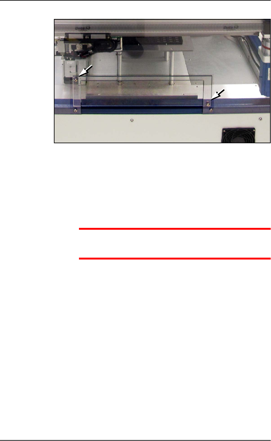 Figure 2-8: The safety shield for the Data I/O Dual Tray Feeder has not