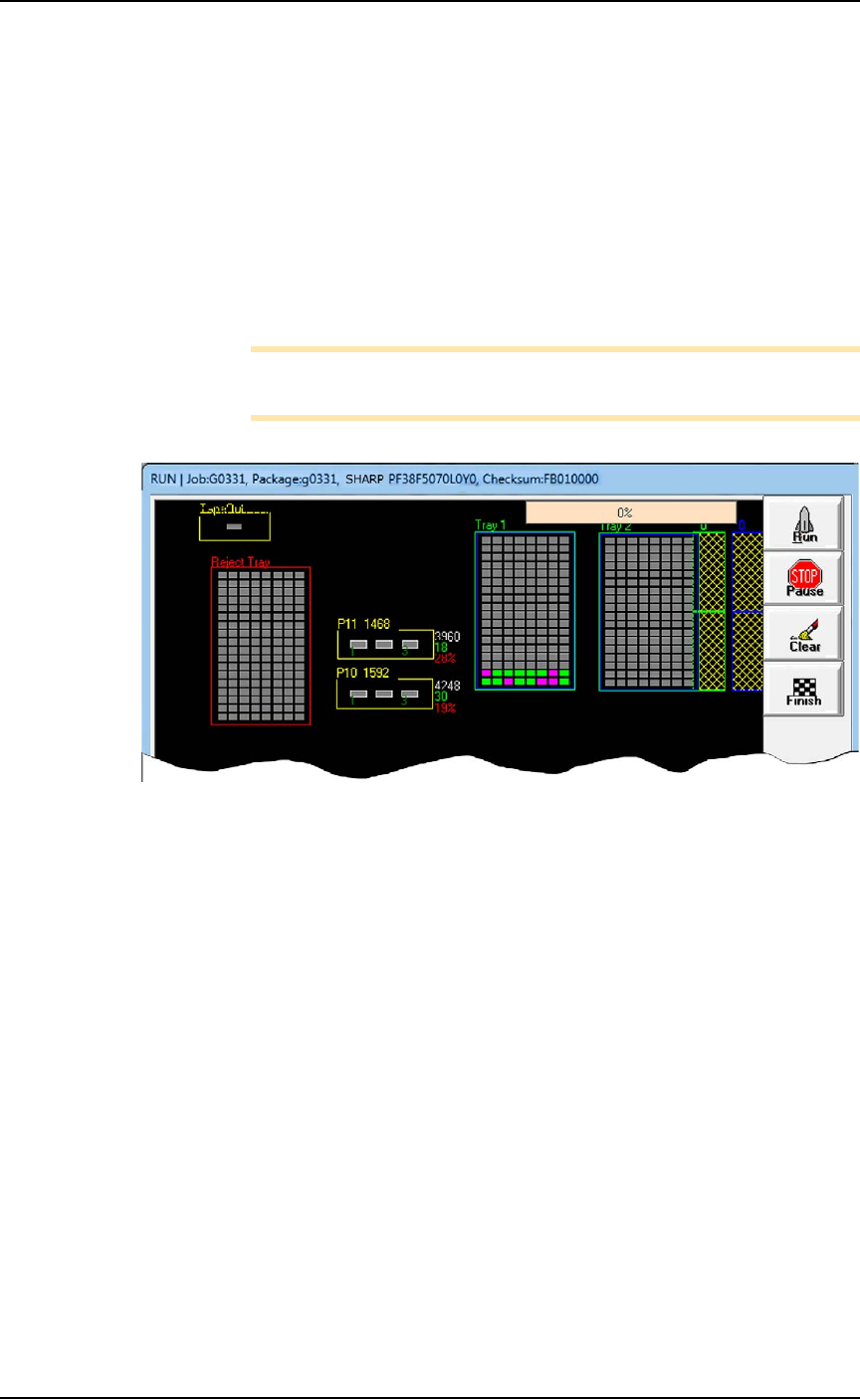 Figure 3-2: Run window shown with a Data I/O Dual Tray Feeder