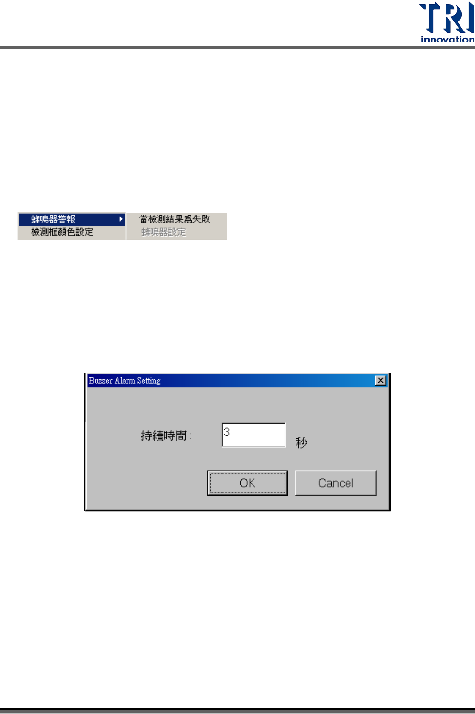 Step 3. 當點完[蜂鳴器設定]後, 會跳出如下圖的對話框,供使用者設定秒數。