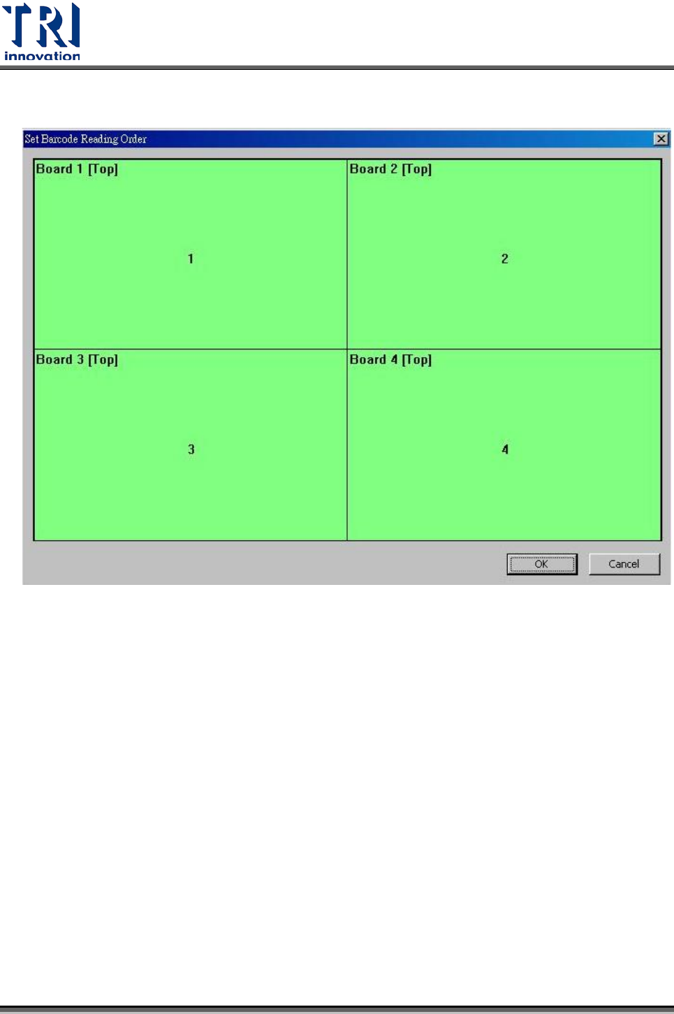 動帶出其他片單板的條碼資訊。若從左邊進板,則須以條碼機讀取右上角板子的條碼,