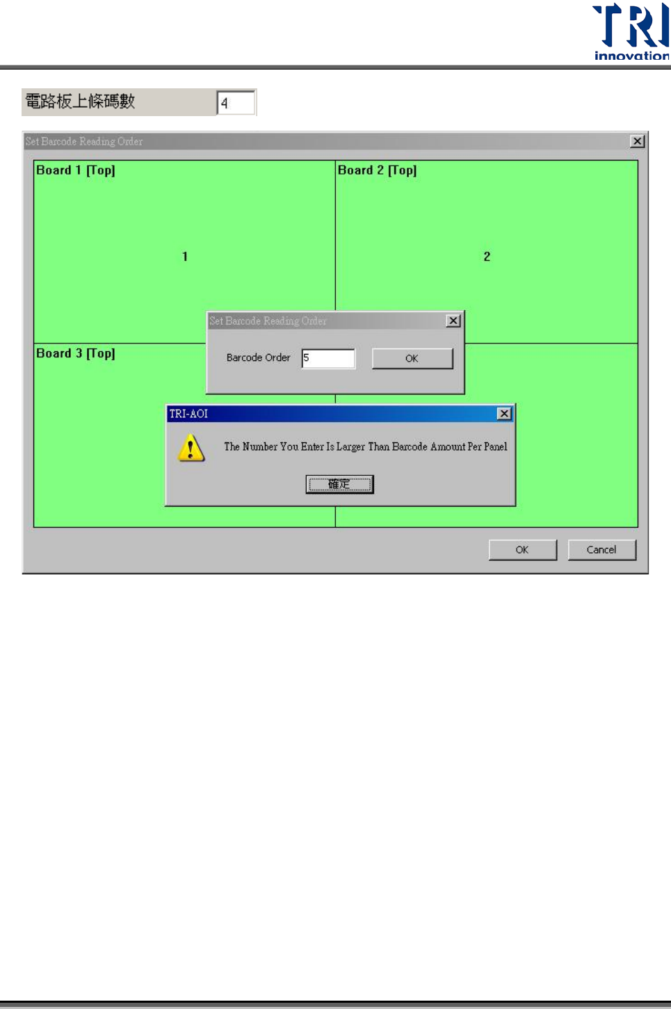 • Change Barcode –手動輸入每個板子的條碼尾數號,相關應用請見下一章節