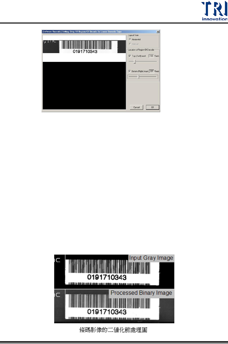 在此由條碼解碼的運算過程說明此參數意義。原始的條碼影像輸入後,需先
