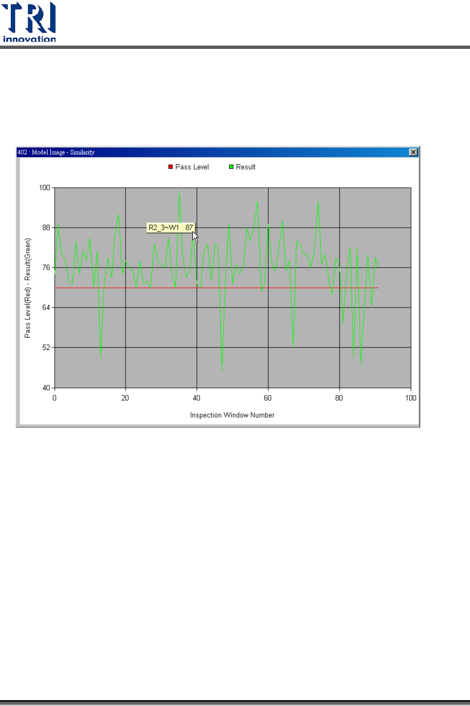 綠色是每顆元件檢測平均值,紅色是該參數的比對條件,在圖上點選可顯示出元件名