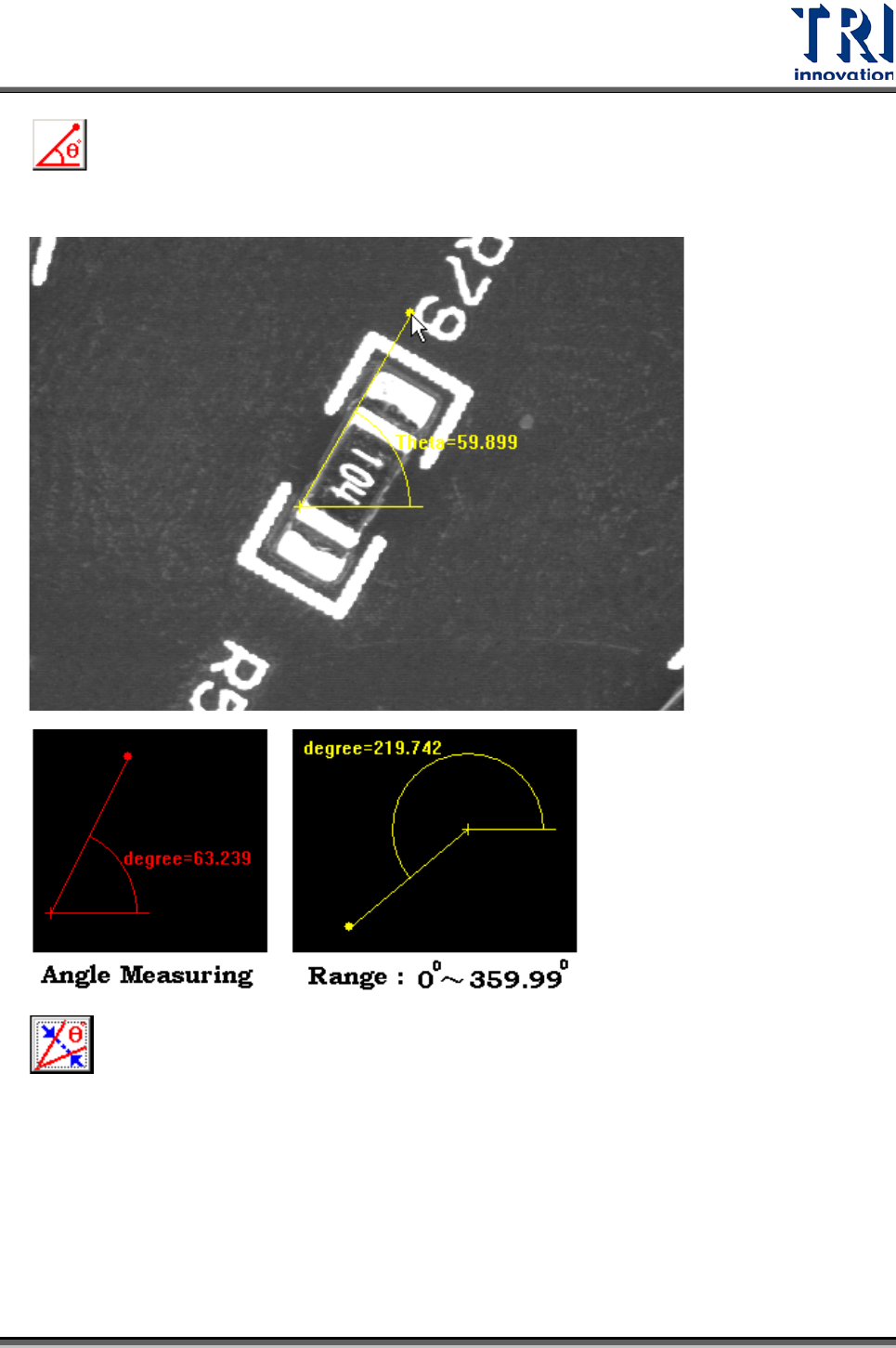 • 定義元件角度的工具。若元件具有特殊角度可利用此工具來量測。
