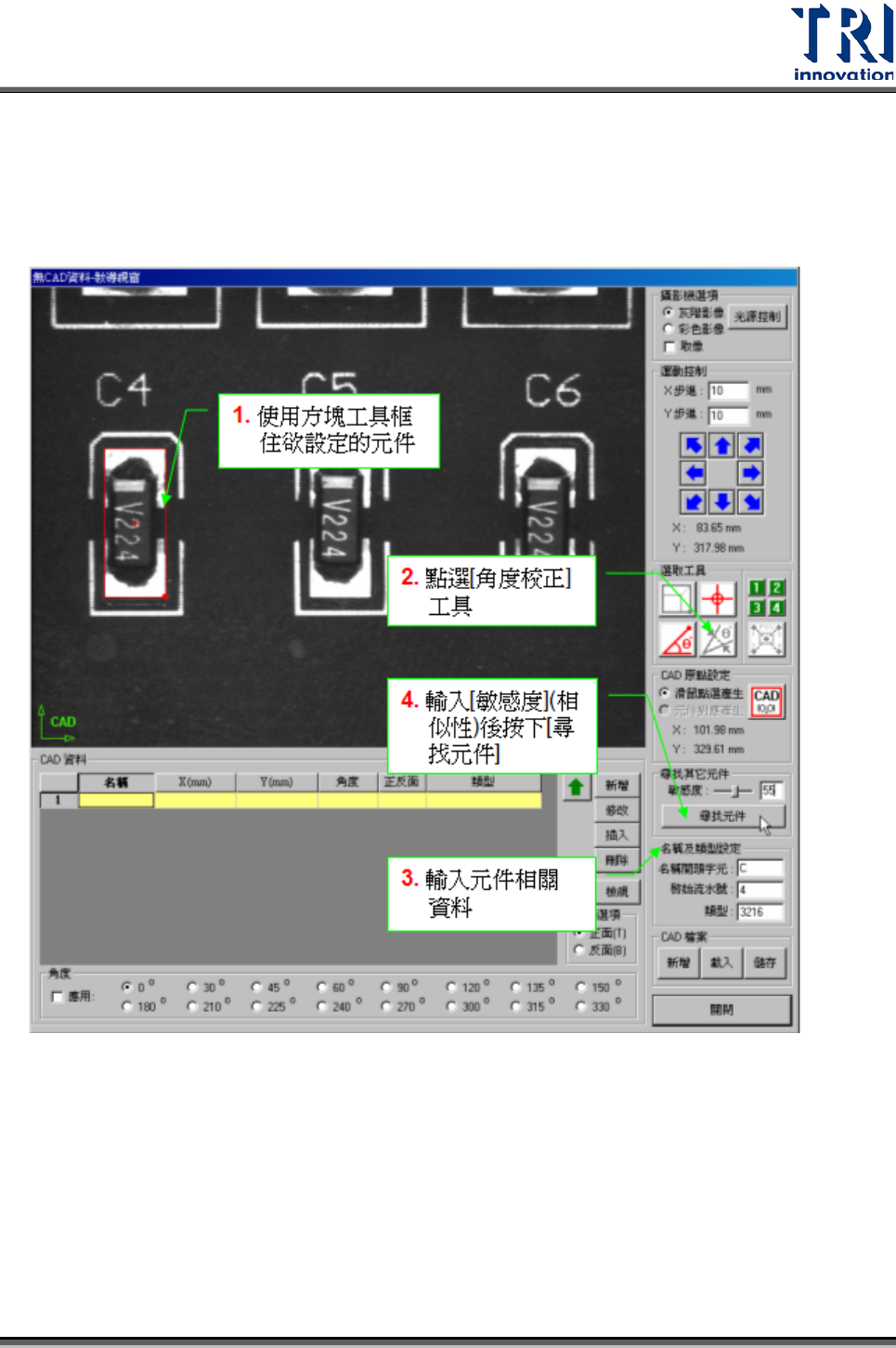 2. 尋找其他元件:此功能可以針對相似度高的影像自動建立元件座標。步驟如下,