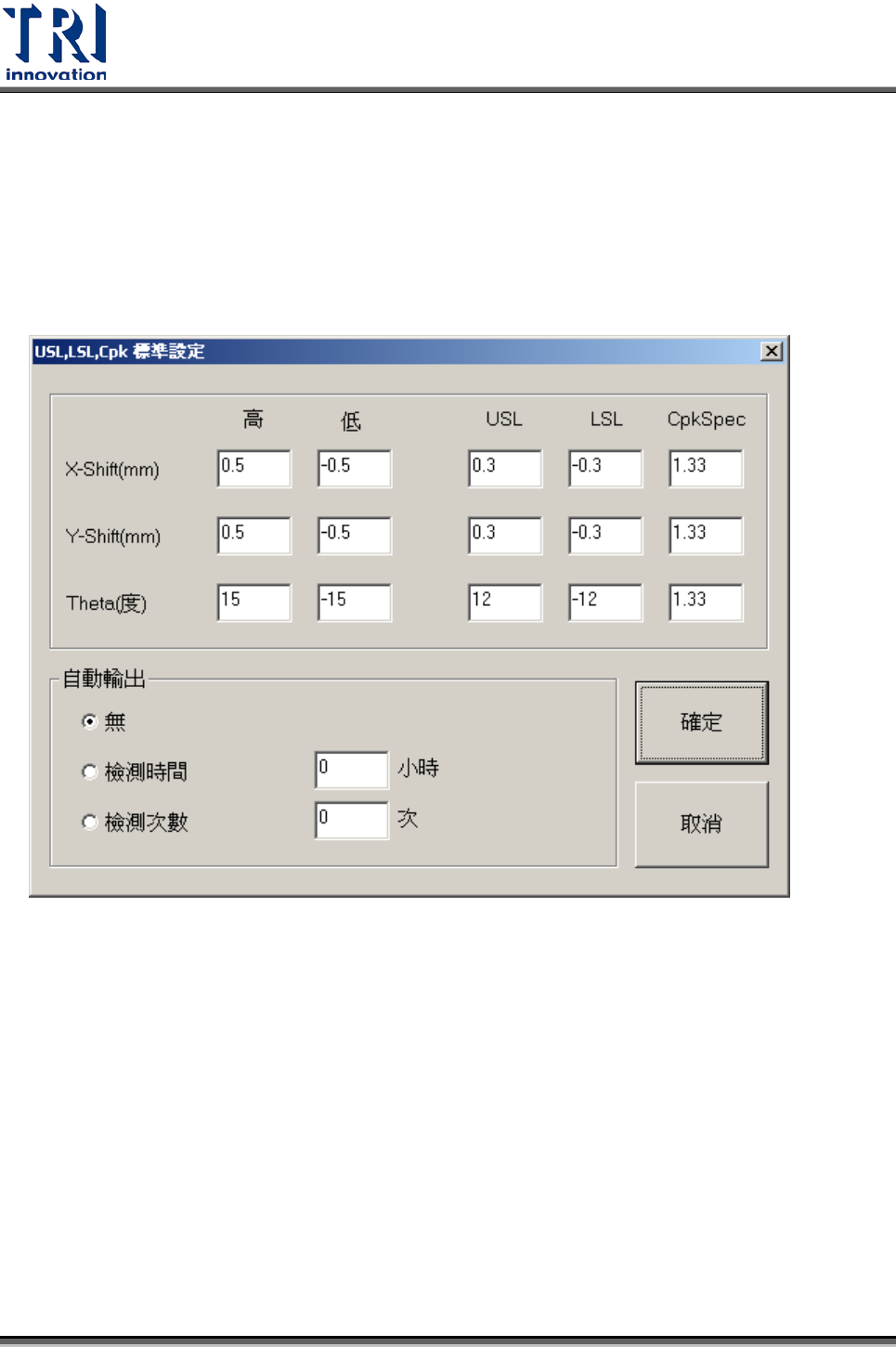 :可自訂所計算出的 Cpk 容許值,高於此值可視為正常,低於此值視為異常。
