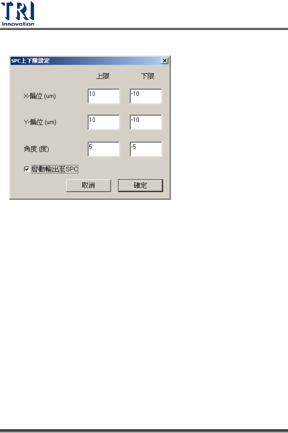 向偏移量以及元件旋轉角度等檢測結果資料輸出至 SPC 統計。在此須先設定各輸出結