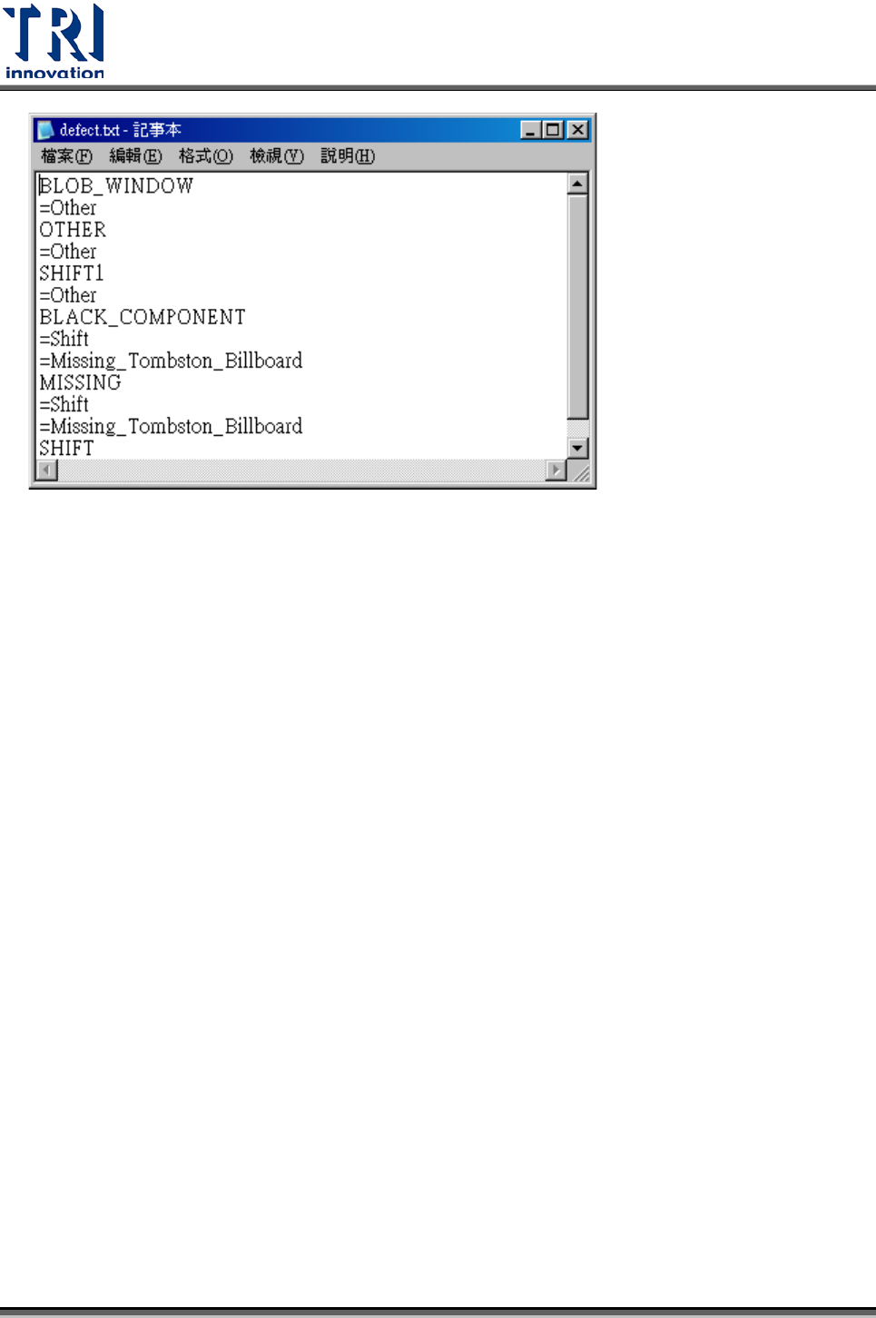 [C:\AOI\defect.txt]檔案中自行定義演算法所指定的錯誤名稱。
