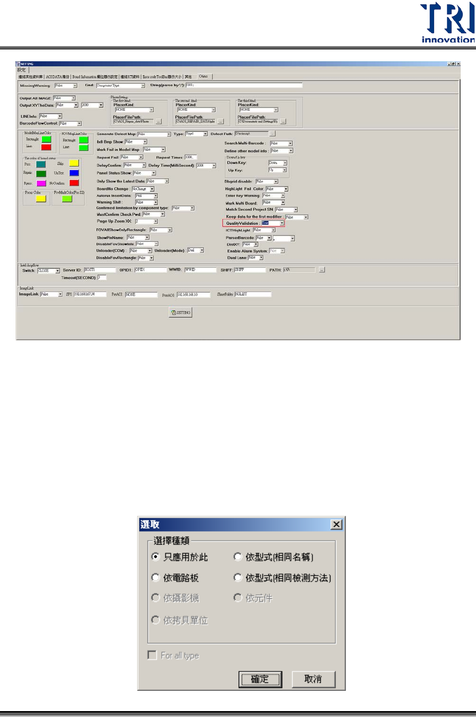 設定維修站主程式中的[設定]>[Others]>[Quality Validation]為[True],如下圖所示。
