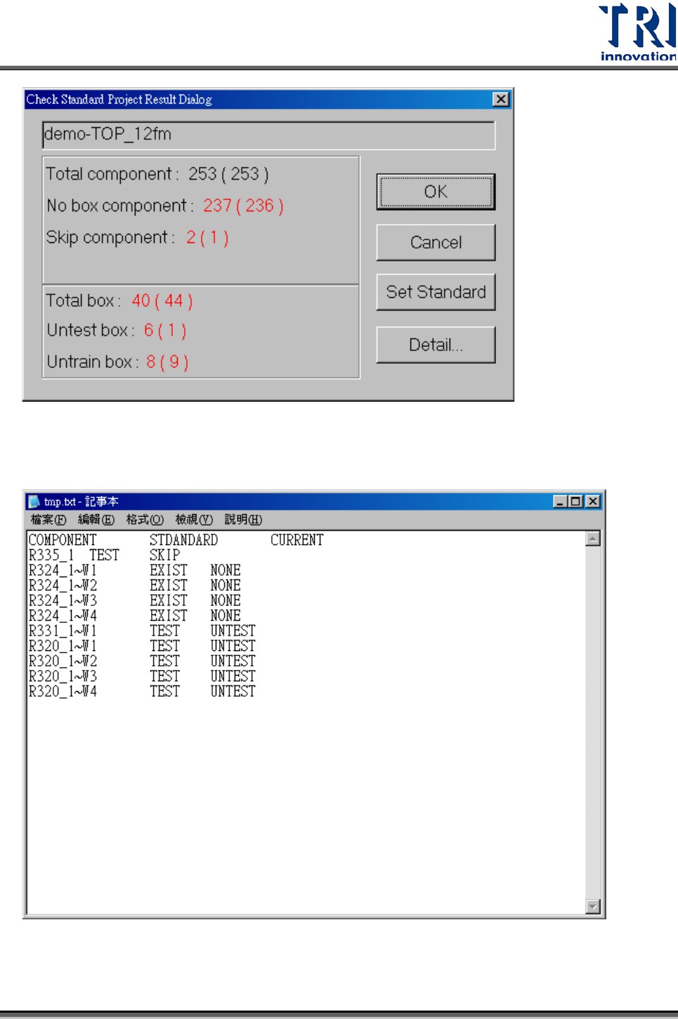 Detail:顯示詳細比對資料,如下圖所示。