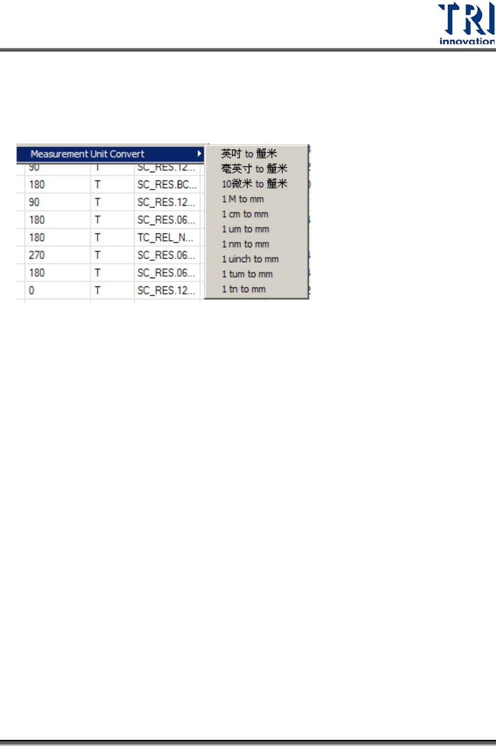 所匯入的 CAD 檔案如果單位不為 mm,可直接使用本功能進行單位換算。可切換的單