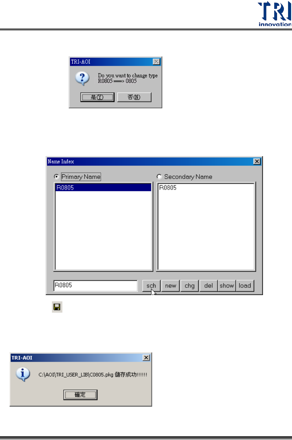 的 TRI_PRJ_LIB 資料夾。選擇功能後會出現以下視窗,選擇[是]將會進行存檔。
