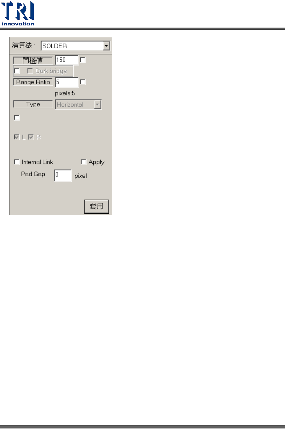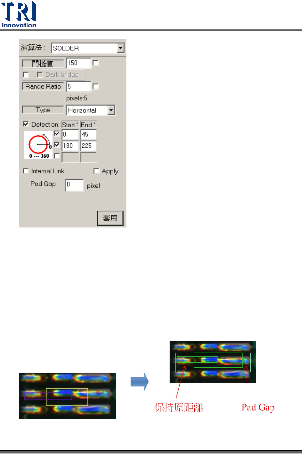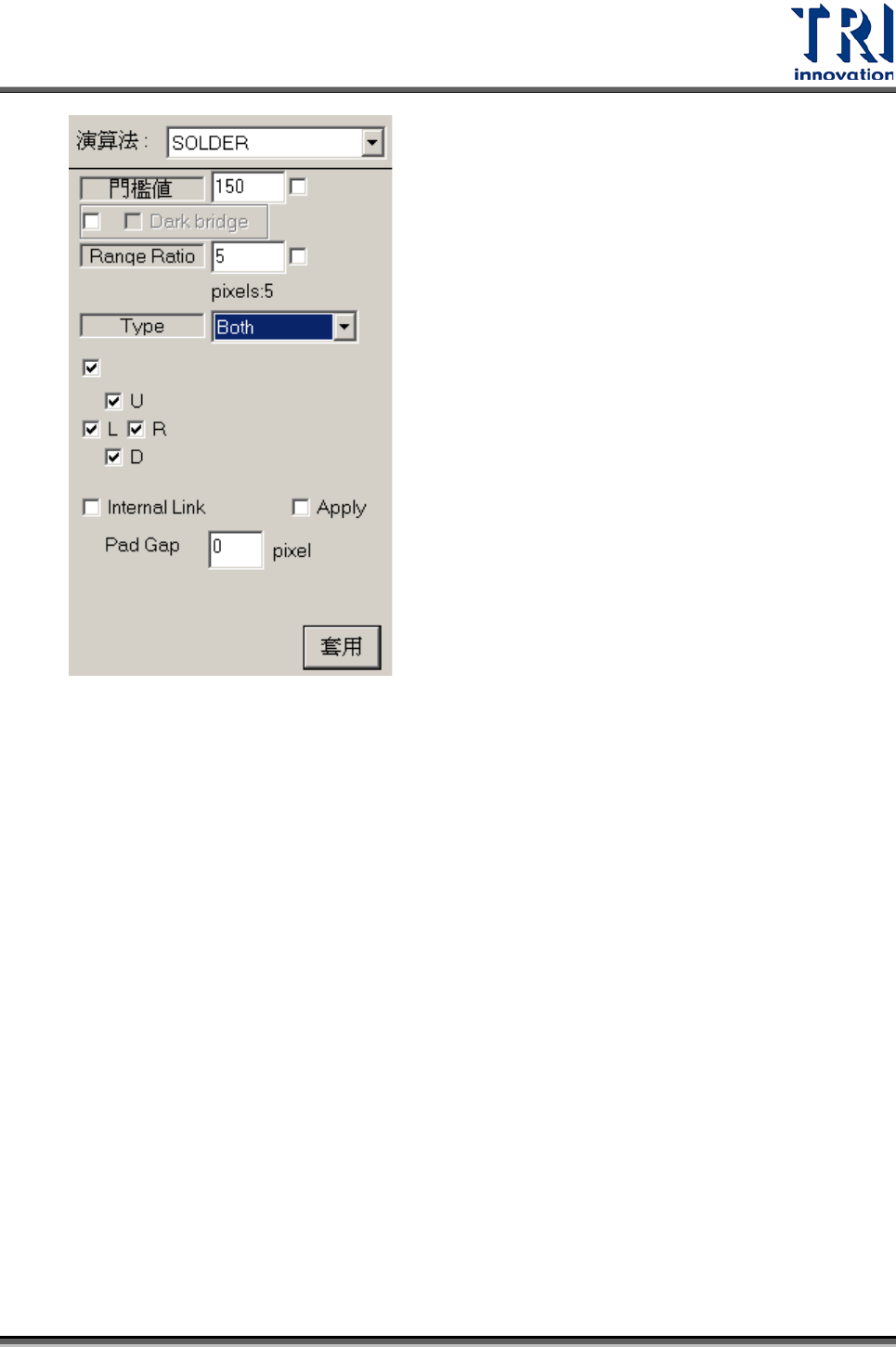 :若短路的影像為黑色時,勾選[Dark bridge]表示抓黑色,即檢測從