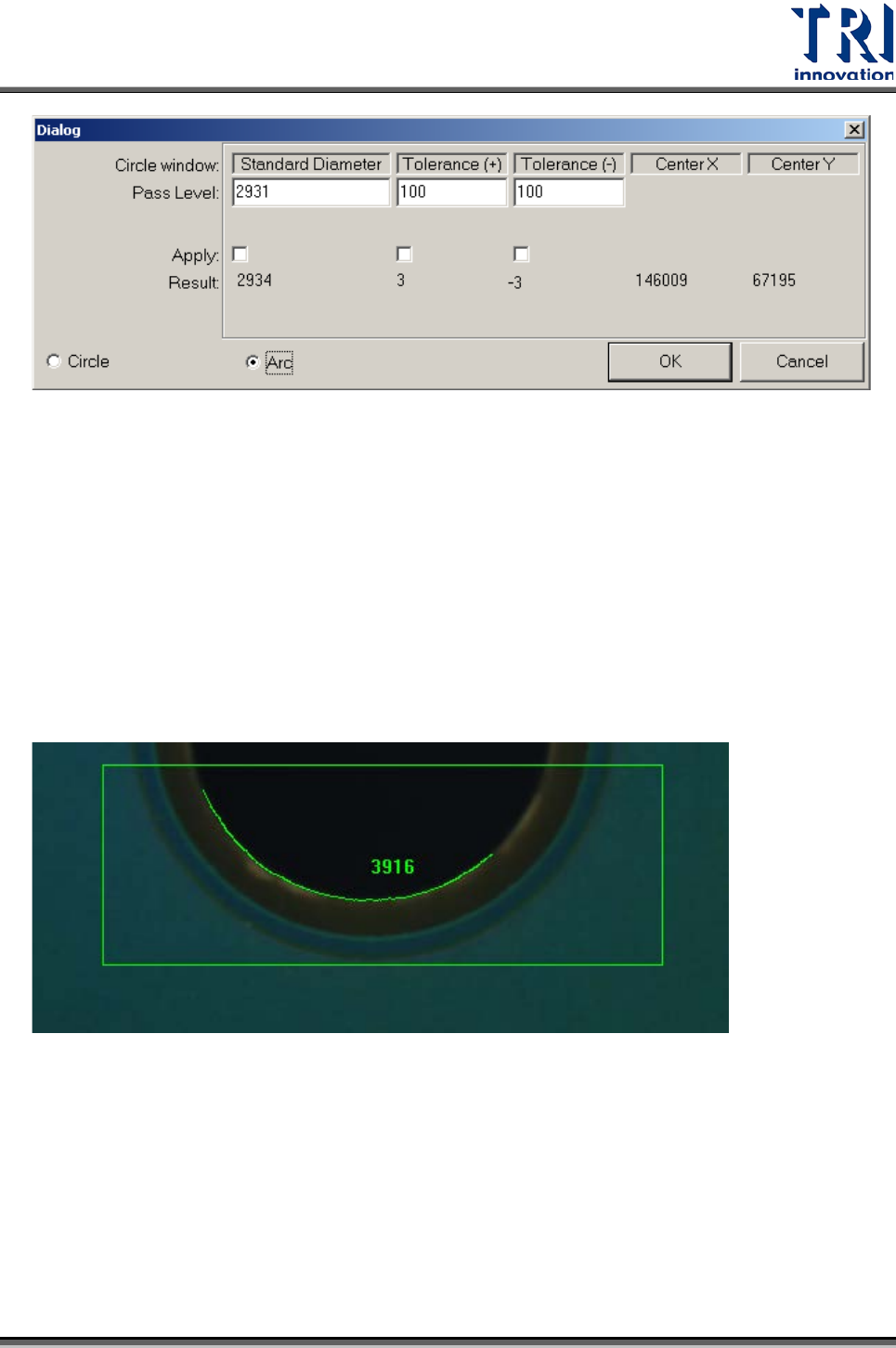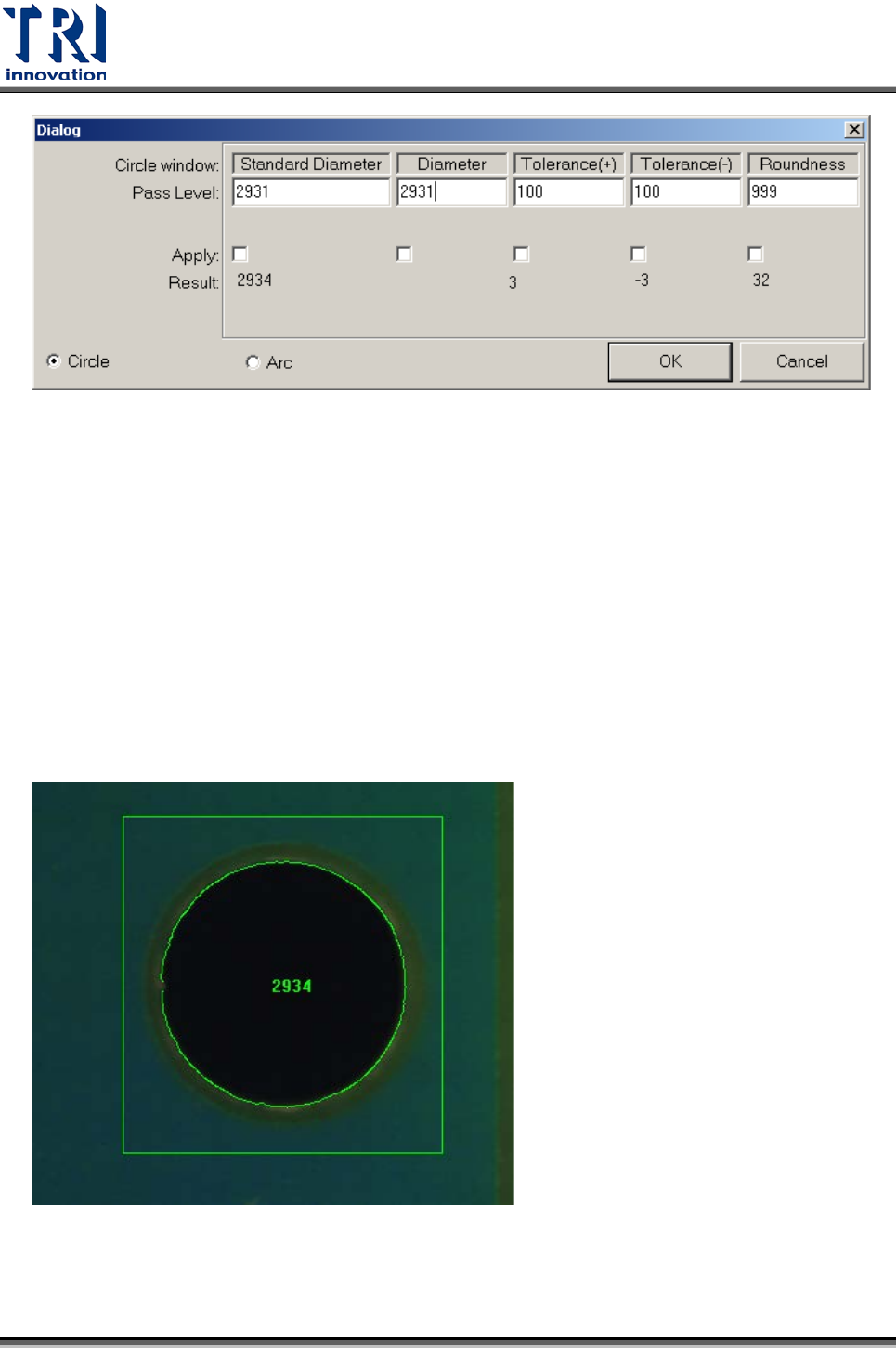 Test Research Inc. 446 TR 7700 S II DL Us er Gui de – Software 參數說明: Standard D iameter : 直徑標準尺寸 ,單位為 micron 。 Tol e rance(+) : 直徑 變化正容許值,單位為 micron 。 Tol e rance( -) : 直徑 變化負容許值,單位為 micron 。 Center X :圓心 CAD X 座標,單位為 mi…