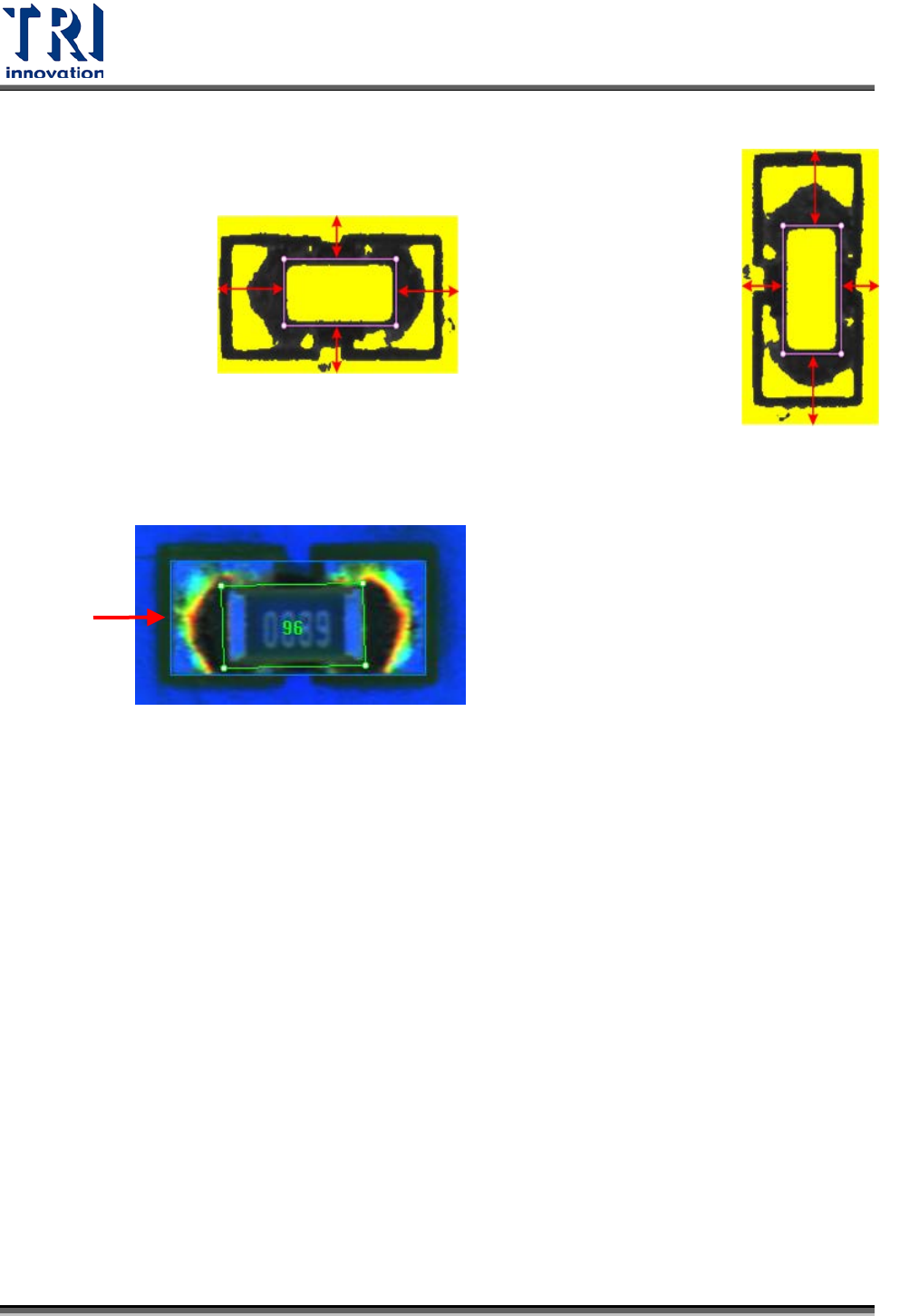 Test Research Inc. 498 TR 7700 S II DL Us er Gui de – Software iv. 當權重設定完成,在 Pad Reposit ion 視窗按下 [Get Paramet ers] 按鈕。 v. 按下 Apply 按鈕完成設定。 (2) 色彩空間法 (Color Spa ce) : i. 使用滑鼠右鍵在擷圖 Chip 縮圖上的焊盤區拖曳出要選取的顏色範圍, 程式即自動做分析,並顯示出 P…