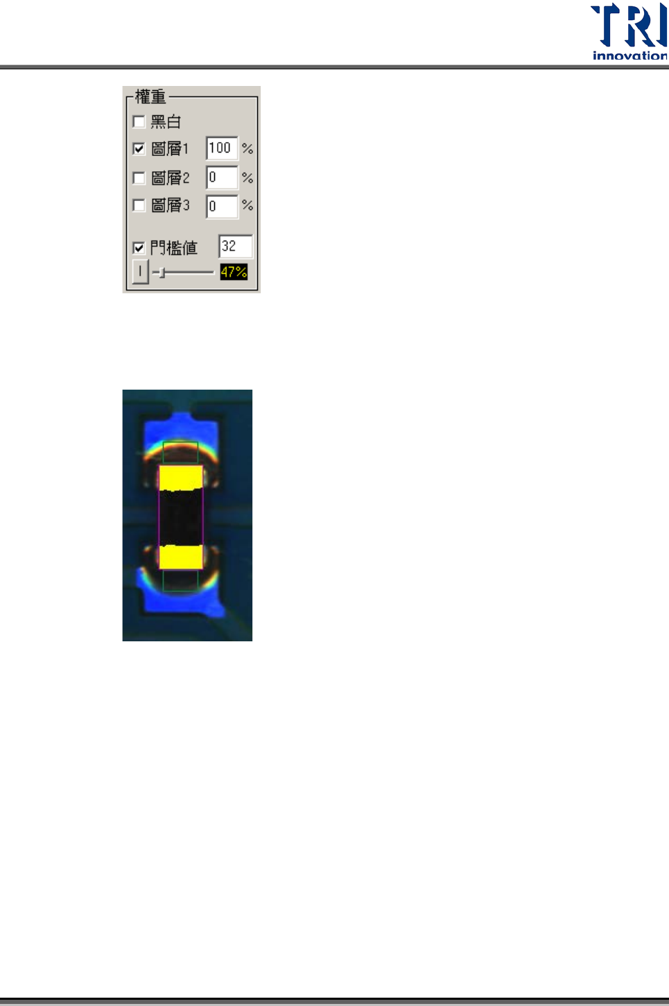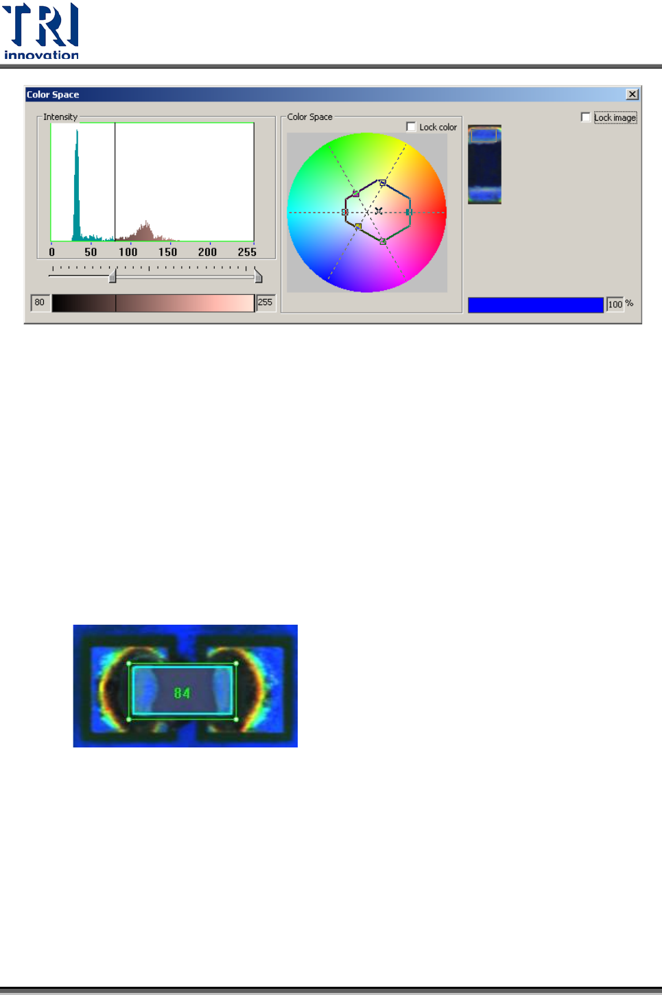 Test Research Inc. TR 7700 S II DL Us er Gui de – Software 503 ii. 得到初值後,需再進一步做微調,來切出正確的電極端。 iii. 為了讓所選取的色彩空間更具彈性,以因應其他相同元件電極端可能的 顏色變化,建議再將亮度與色彩空間範圍放大,此時可用滑鼠滾輪來放 大 / 縮小亮度與色彩空間交集區域。詳細的設定請參閱 Color Spac e 。 iv. 若沒有要將較亮的白線或其…