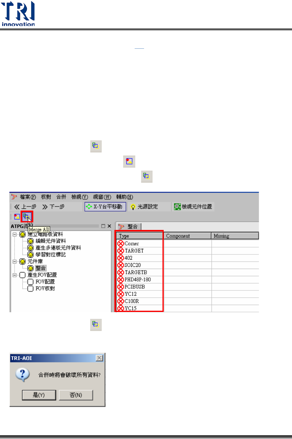 2. 按下[Merge All]按鈕( )後,會出現以下警告視窗。若選擇[是],整合步驟將會