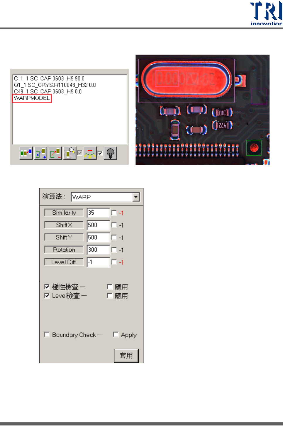 Step4. 設定完成,在影像區域產生[Warp]且在元件表上產生[WARPMODEL]元件。