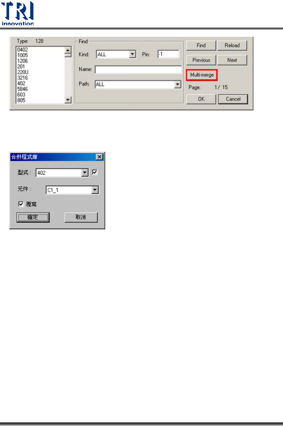 擇多個類型的元件,以元件資料庫中所儲存該元件的元件資料進行[Merge]的