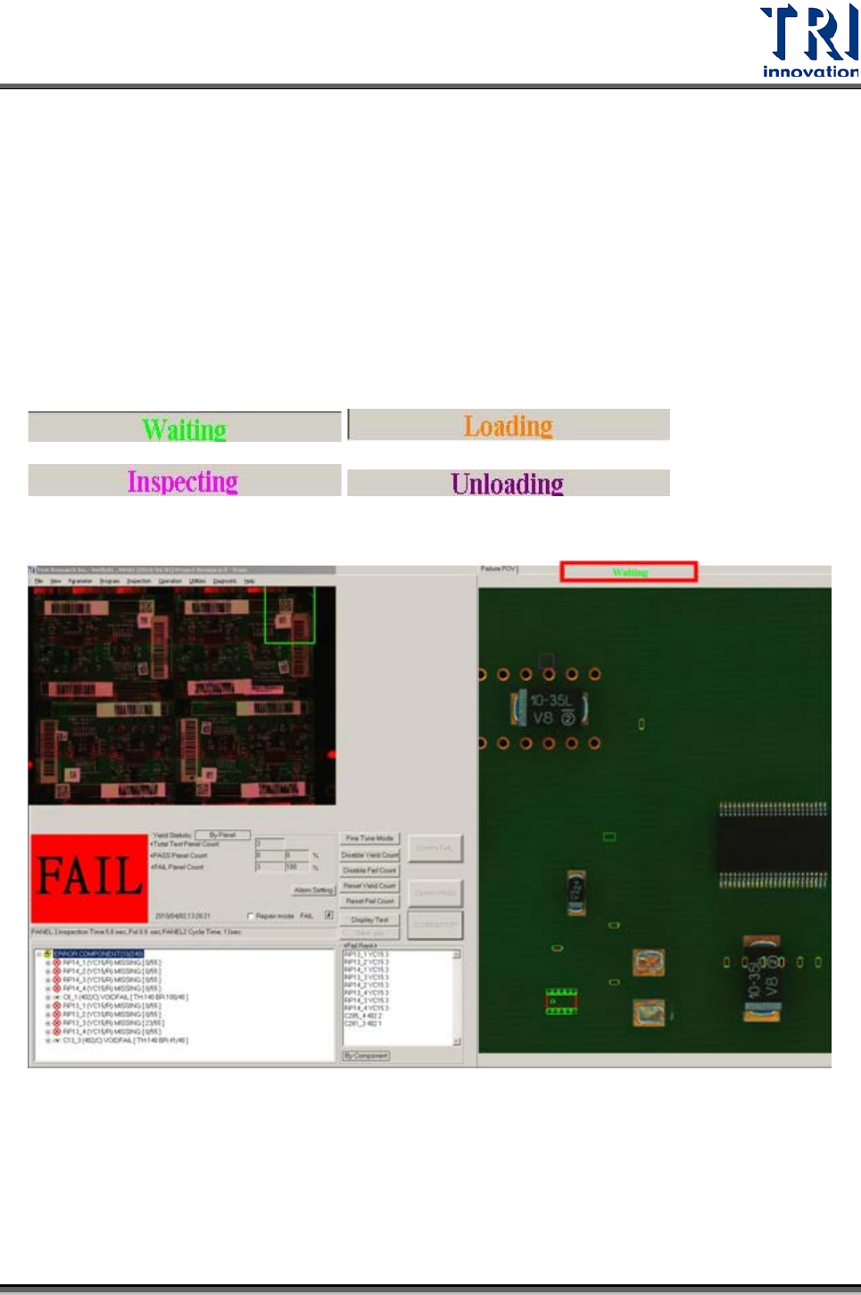 Test Research Inc. TR 7700 S II DL Us er Gui de – Software 577 7.14 顯示上一片 待測板的週 期時間 (Cyc le Tim e) 1. 功能介紹 顯示上一片的檢測週期時間 ( 進板到出板 ) 。 顯示畫面如下 6. 注意事項 檢測週期時間, PLC 部分一定要設定以下兩點。 連線模式 。 有後站 。 7.15 將板寬資訊 傳送給後段 的翻板機 版本 : TRA OI 3…