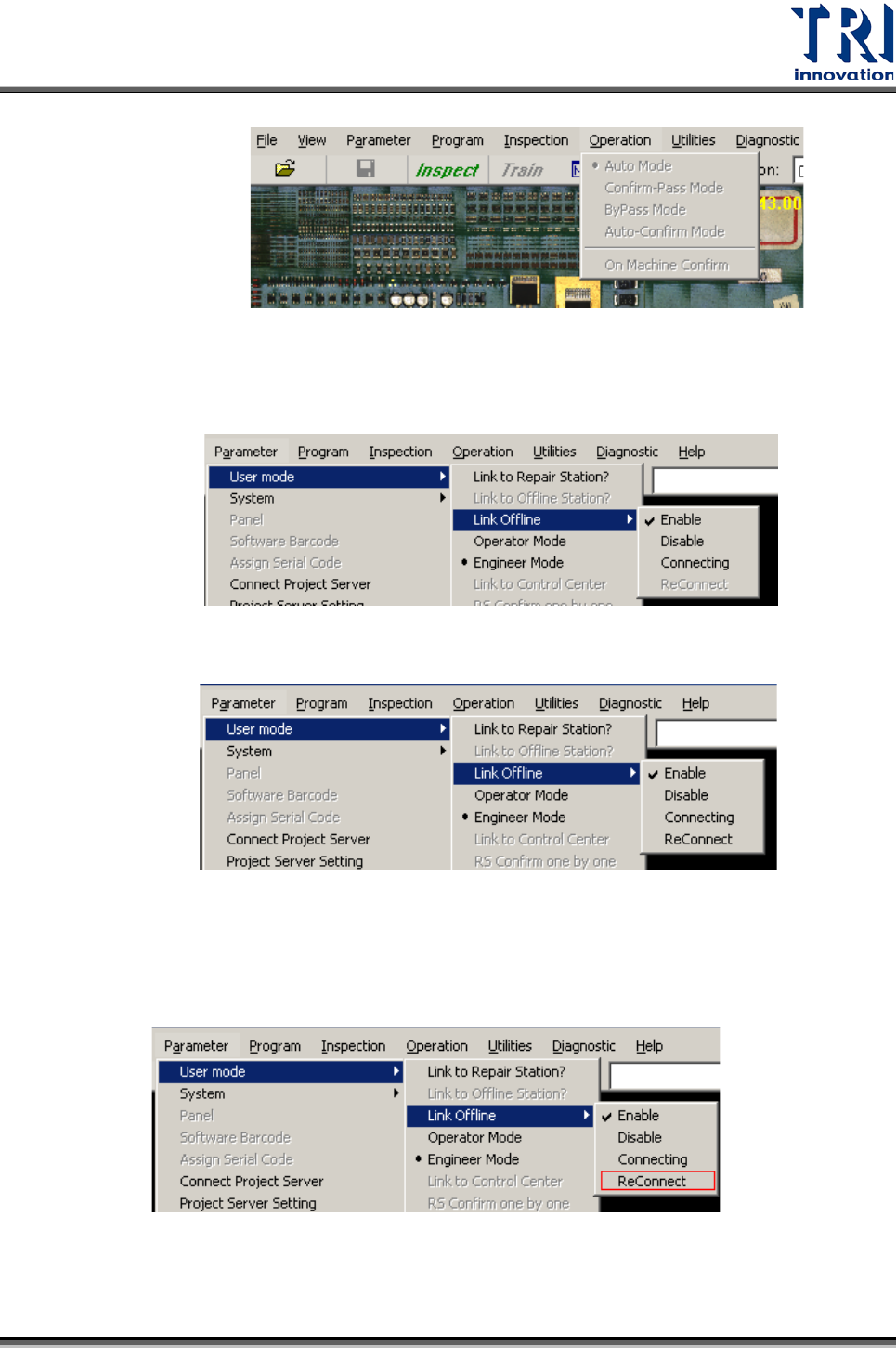 選擇[Parameter] > [User Mode] > [Link Offline] > [ReConnect]