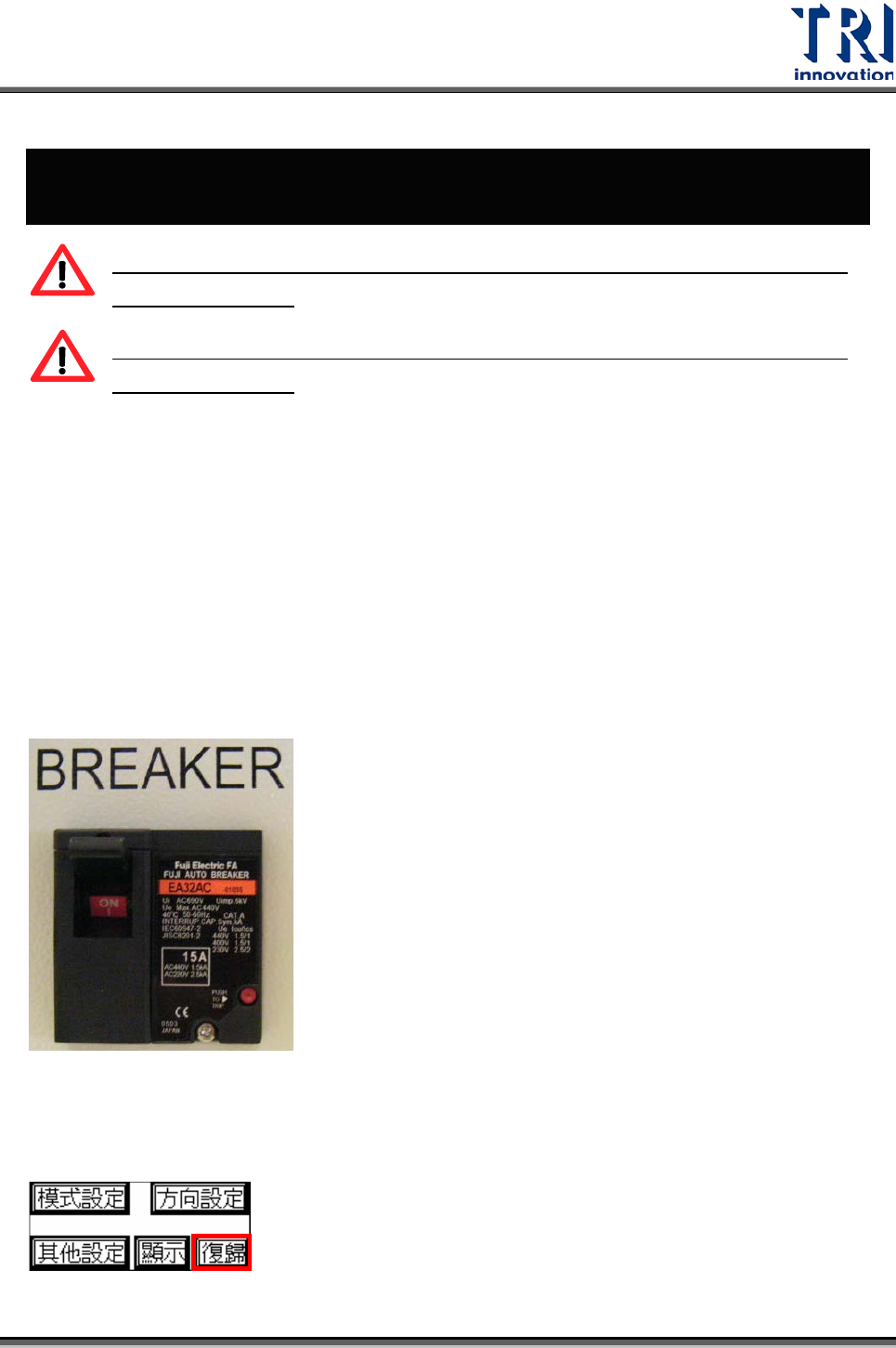 警告:機器運作時不可將頭、手以及身體伸入機器中,以避免電