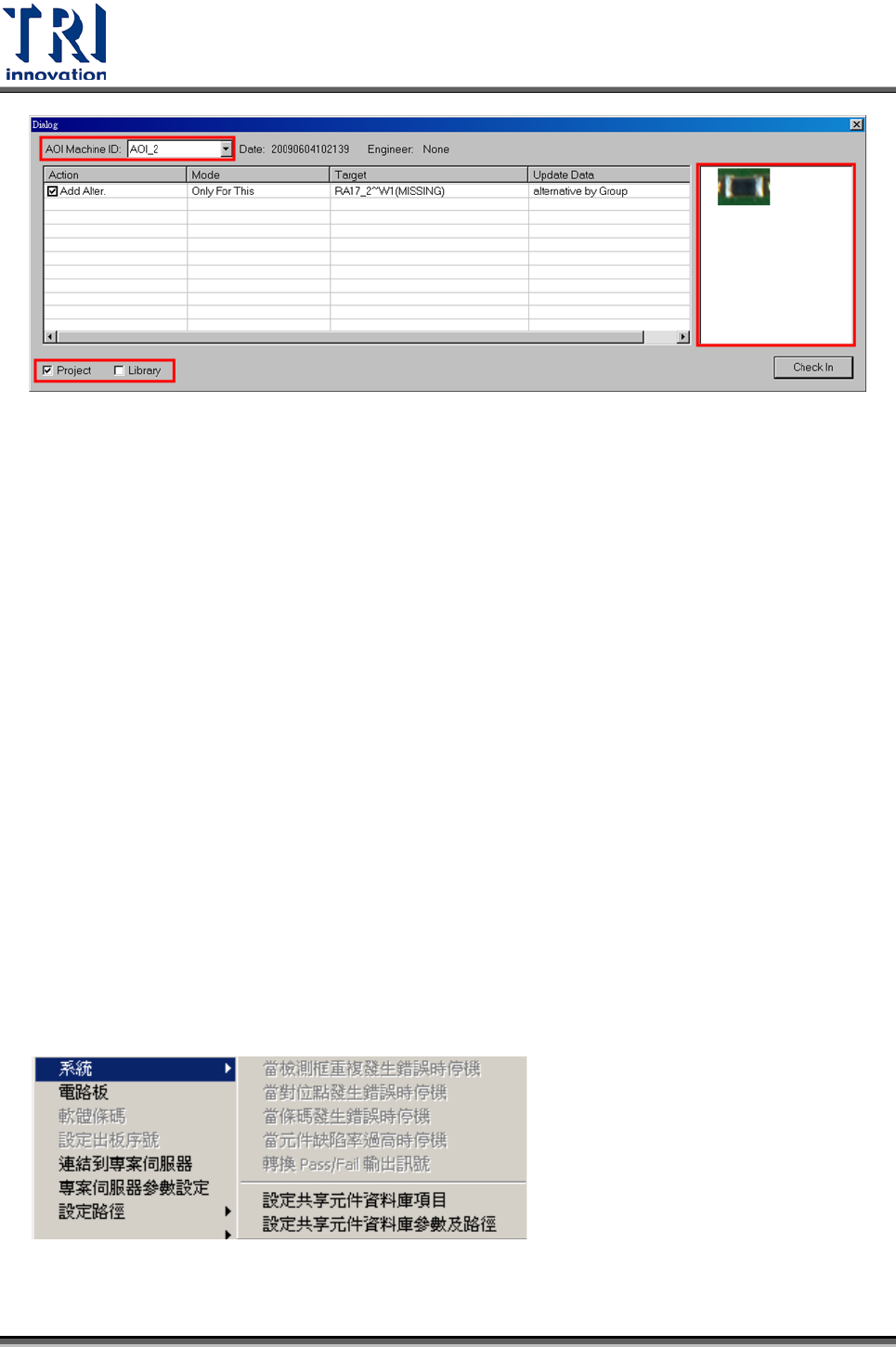 • [AOI Machine ID]欄位中,可選擇不同 AOI 所提出的修改。