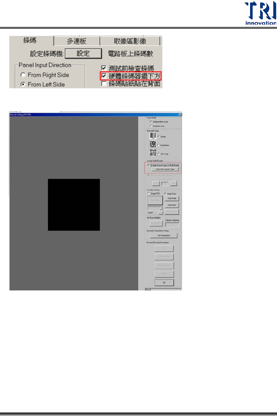 Test Research Inc. TR 7700 S II DL Us er Gui de – Software 109 Step 3. 手動設定 Barcode N u mbe r ( 禁止輸入文字,空字串,重覆出現的末兩碼 )
