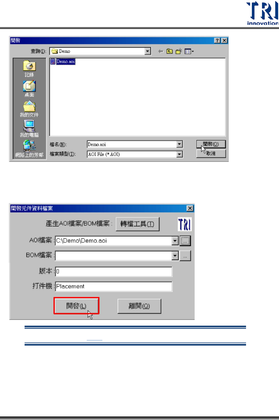 Test Research Inc. 12 TR 7700 S II DL Us er Gui de – Software 9. 開啟 AOI 檔案 關於 [ 轉檔工具 ] 將在 4.1. 2 詳細說明。