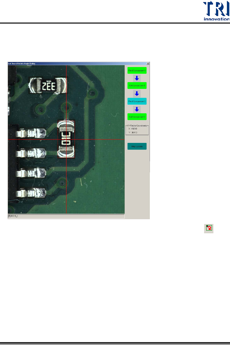Test Research Inc. TR 7700 S II DL Us er Gui de – Software 21 詳細的運動控制說明請參閱 4.7 運動控制 。 2. 按下 [Set Compon ent 1] 按鈕以獲得第一定位元件座標。 3. 當按完 [Set Com ponent 1] 後,選項會自動跳到 [Find Com ponent 2 ] 並跳出以下視 窗。使用者需自行指定第一子板的另一元件作為定位點 R2 。