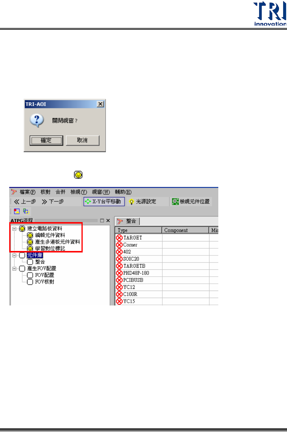 像等等。所產生的元件資料庫將被儲存在[C:/AOI/TRI_USER_LIB]資料夾中。