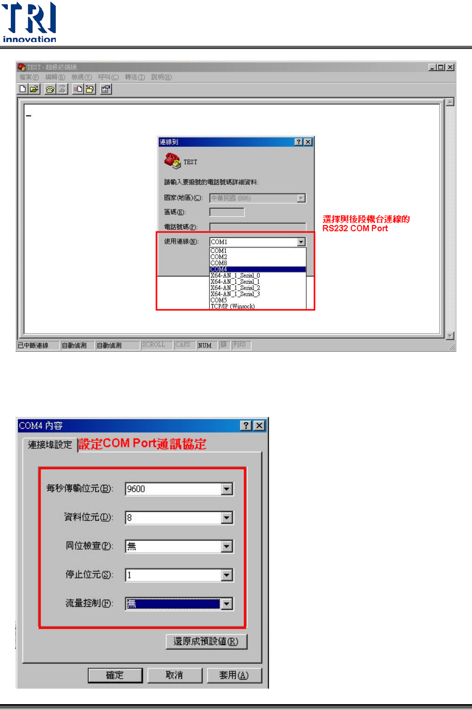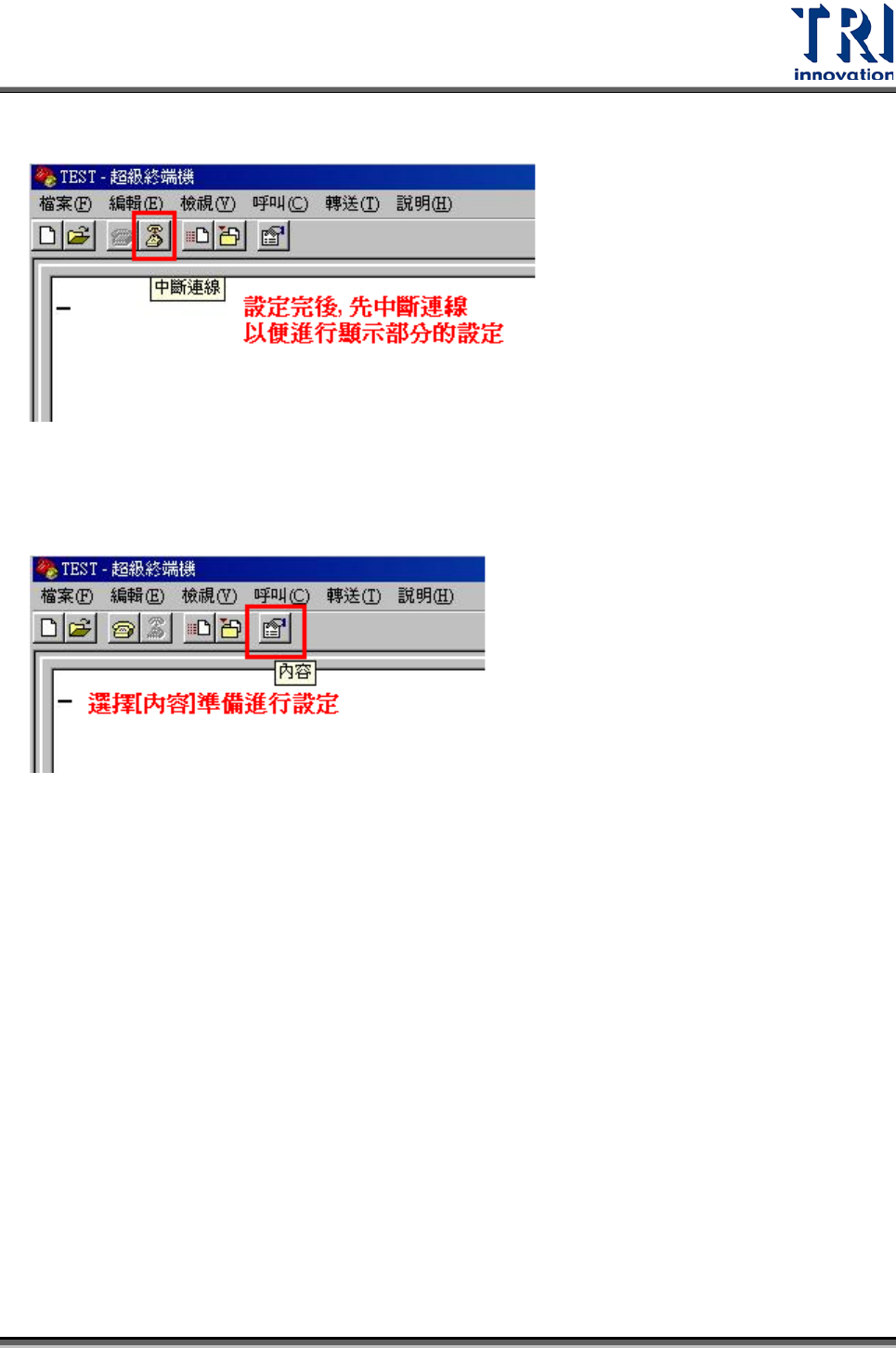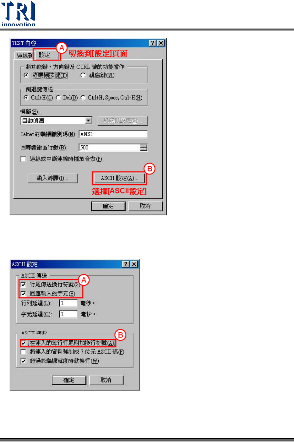 Test Research Inc. 582 TR 7700 S II DL Us er Gui de – Software 中斷連線。 選擇 [ 內容 ] 。 切換到 [ 設定 ] 頁面。點選 [ASCII 設定 ] 。